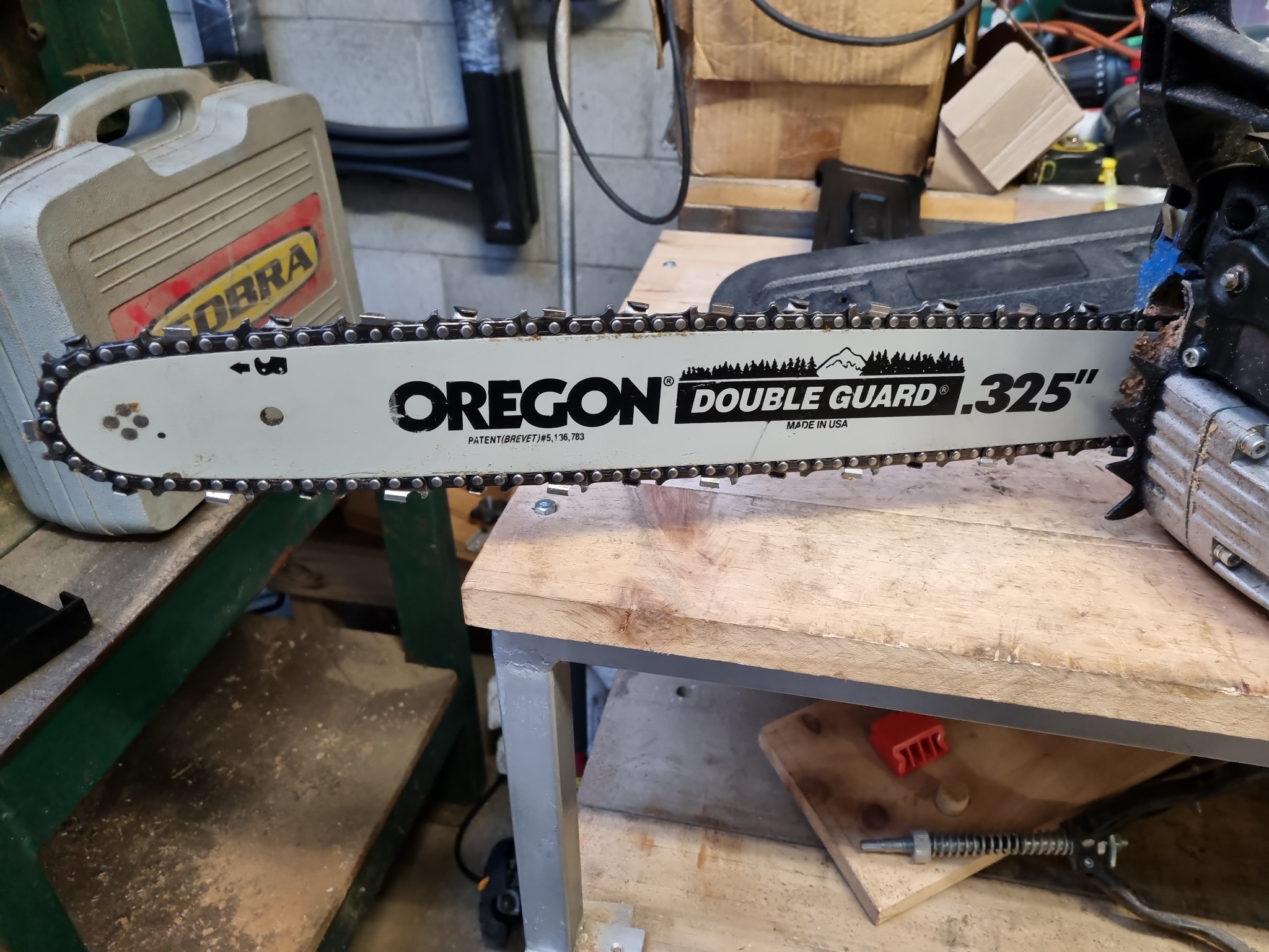 GardenMaster 18" Petrol Chainsaw. Model No.GM45CS3 45cc engine size. 18" (46cm) Oregon Double Guard chsin bar. Includes bag of tools and spare spark plugs and original box. Unable to test as no petrol in tank.