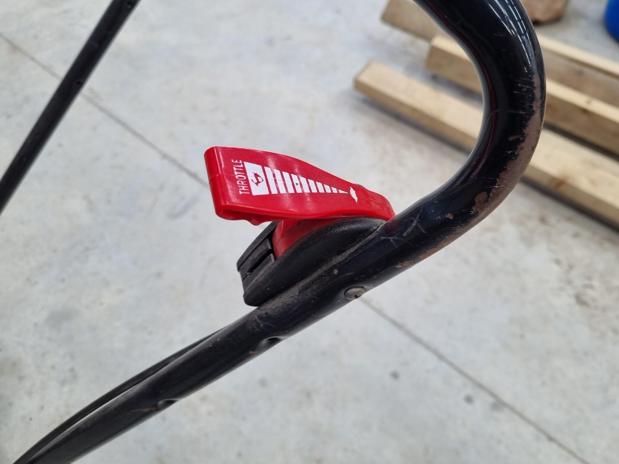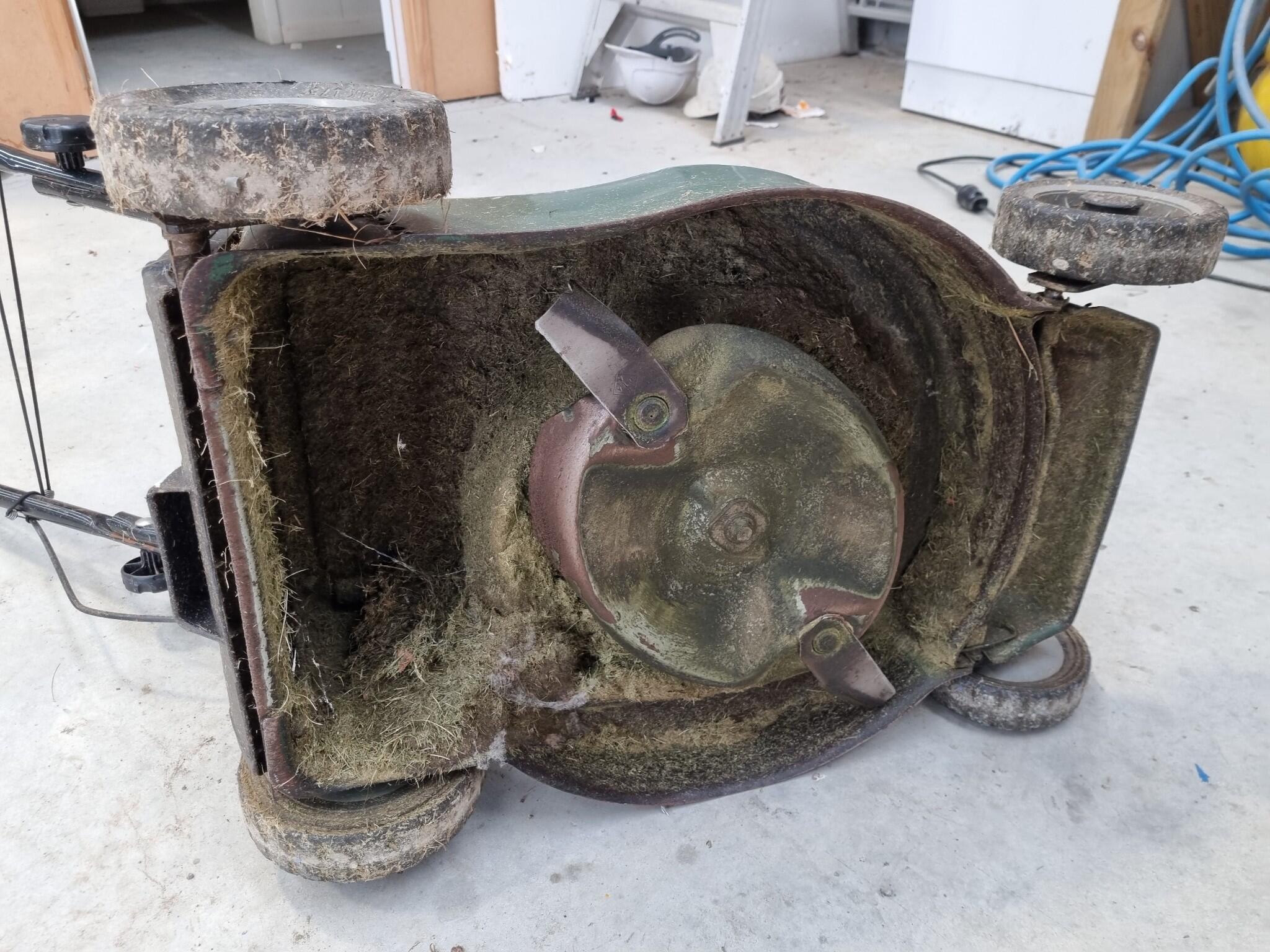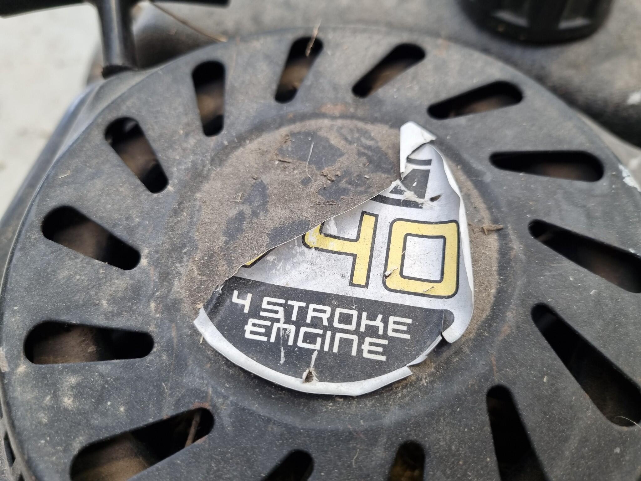 Victa V40 Petrol Lawnmower. 450mm diameter blade. Engine size unknown. Cuttings catch bin attached. Dirty from typical usage.