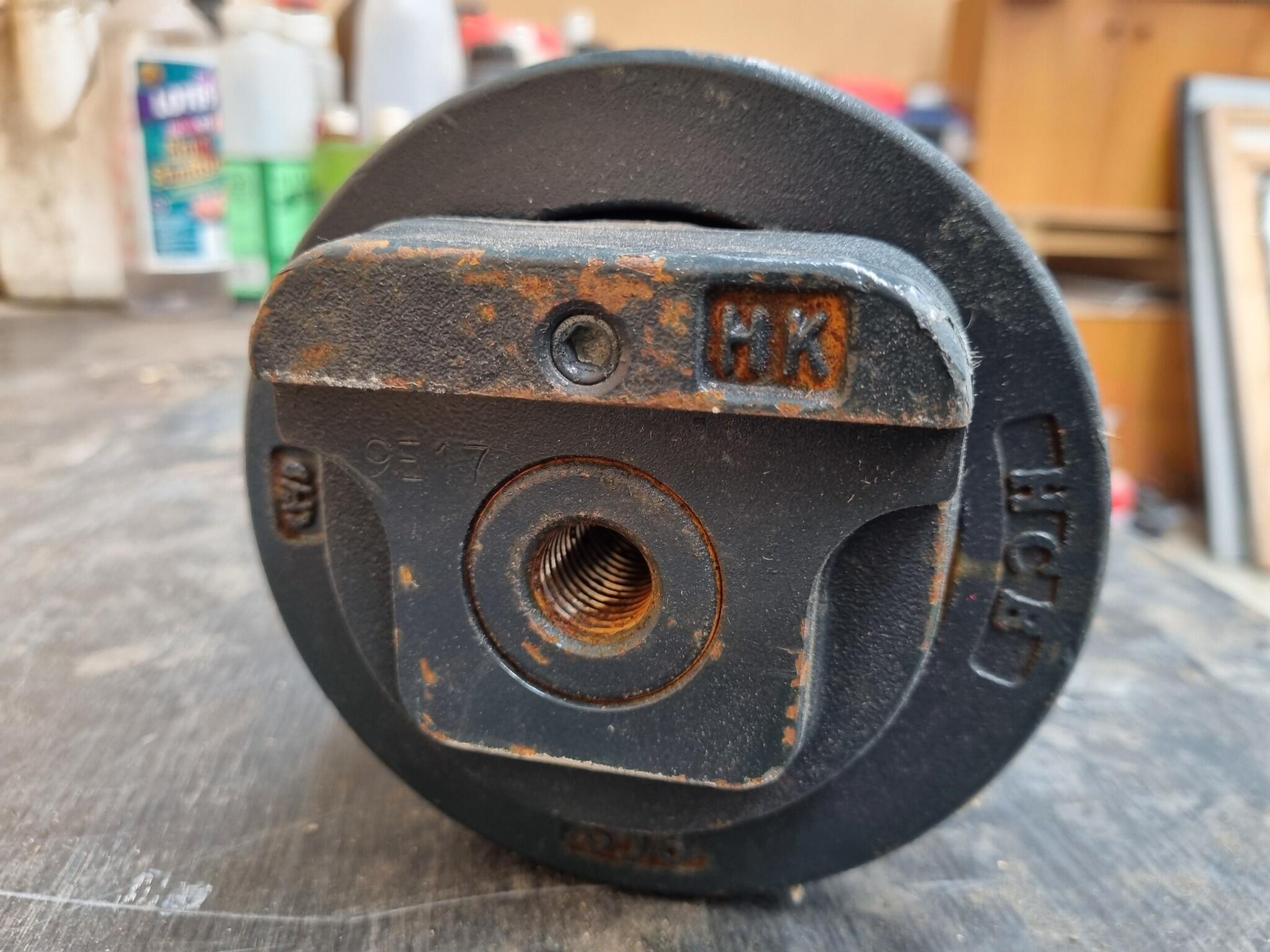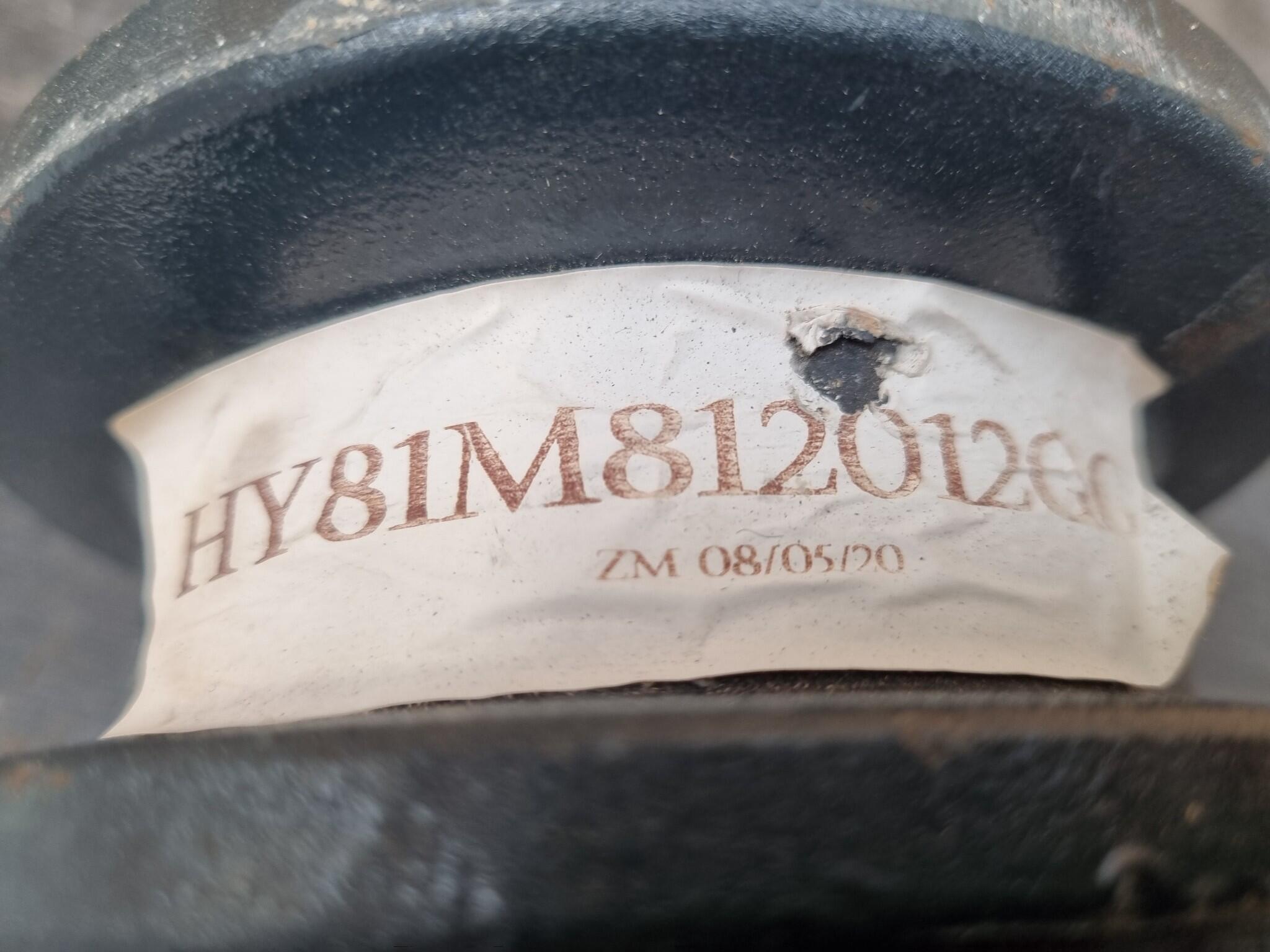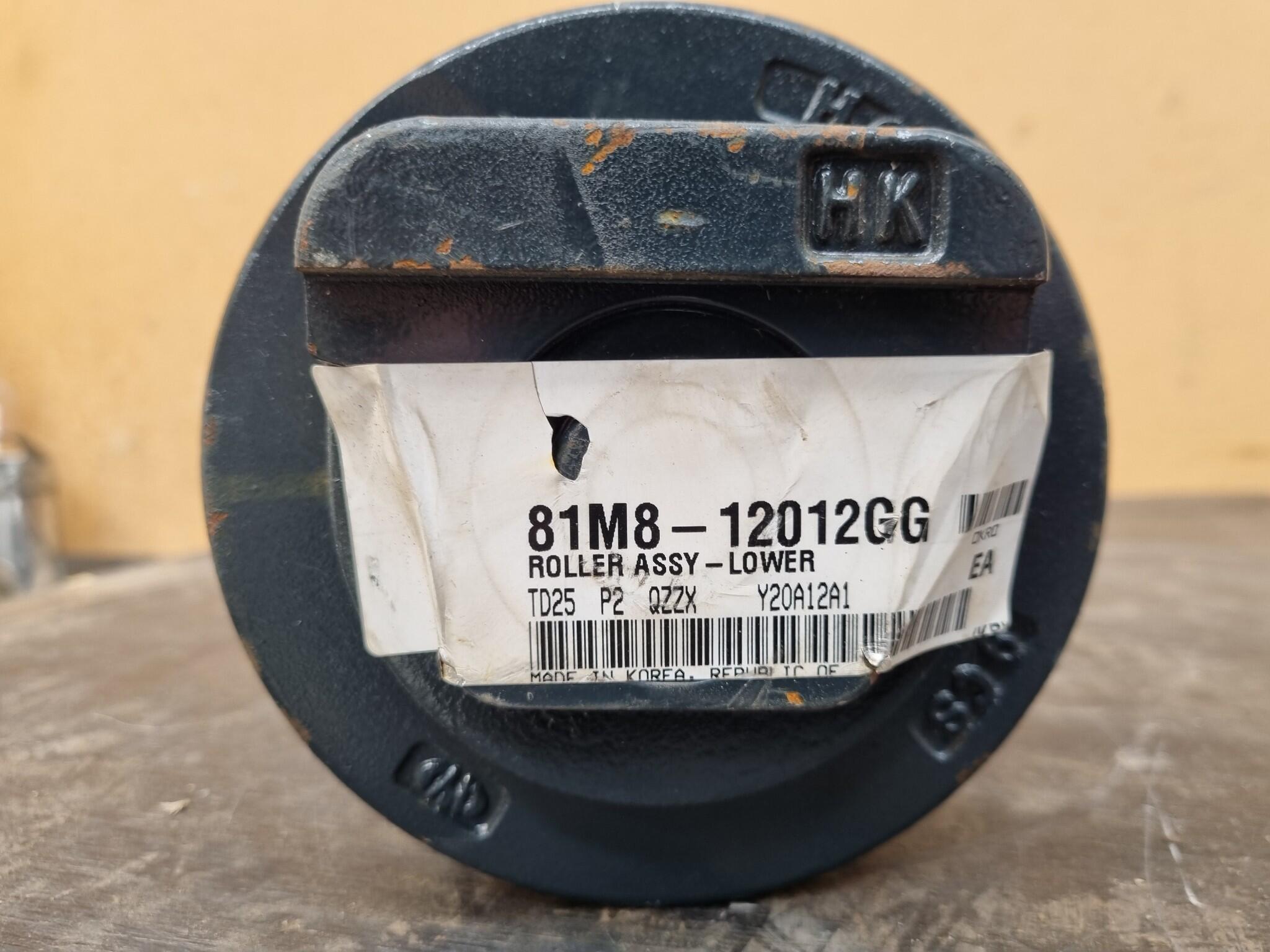 Hyundai Excavator Lower Roller Assembly. Part No. 81M8-12012GG. Unused part. Some surface marks from storage.