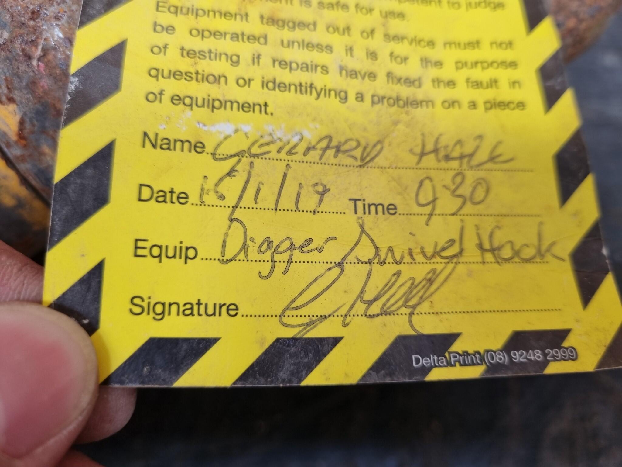 Gunnebo Clevis Self Locking Hook. KB5 20. Unsure as to max lifting capacity. 455mm total assembly length. NOTE that this unit is bent at the swivel hook section, unknown if repairable. Danger tags attached.