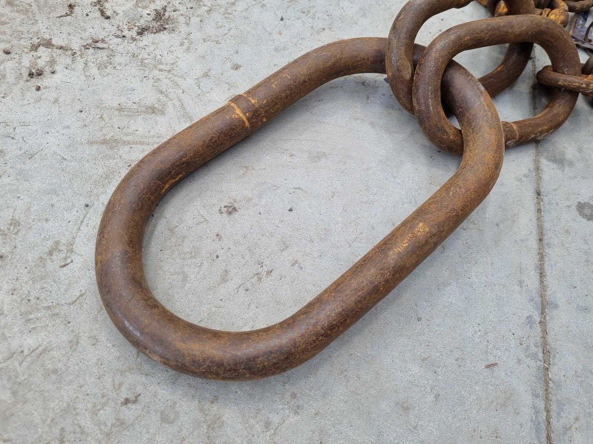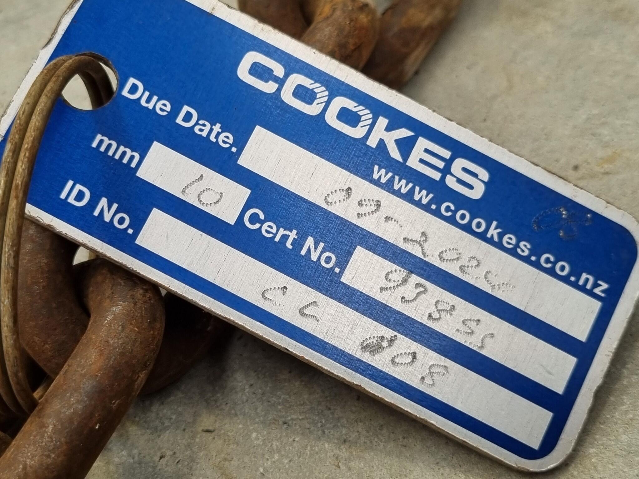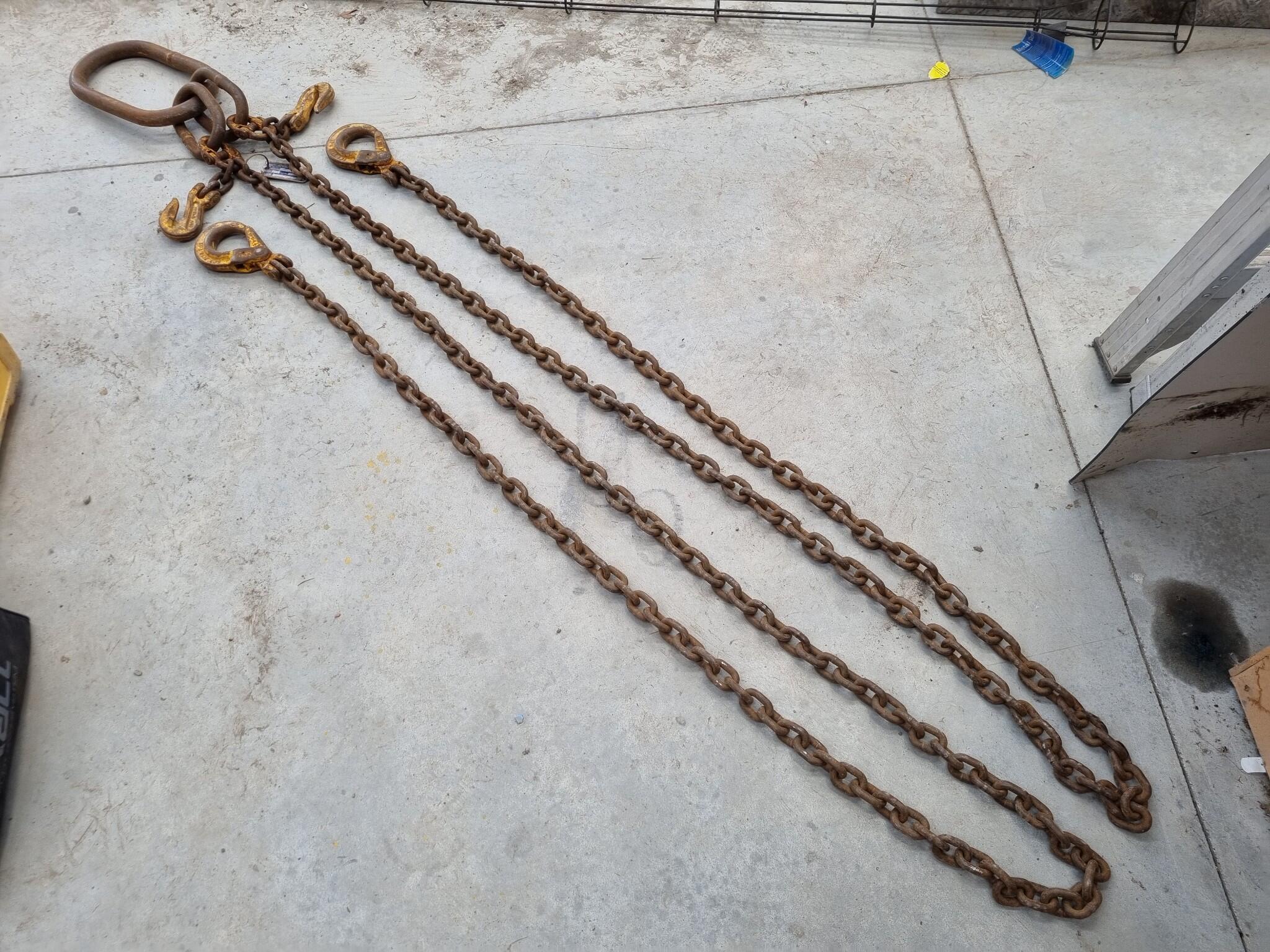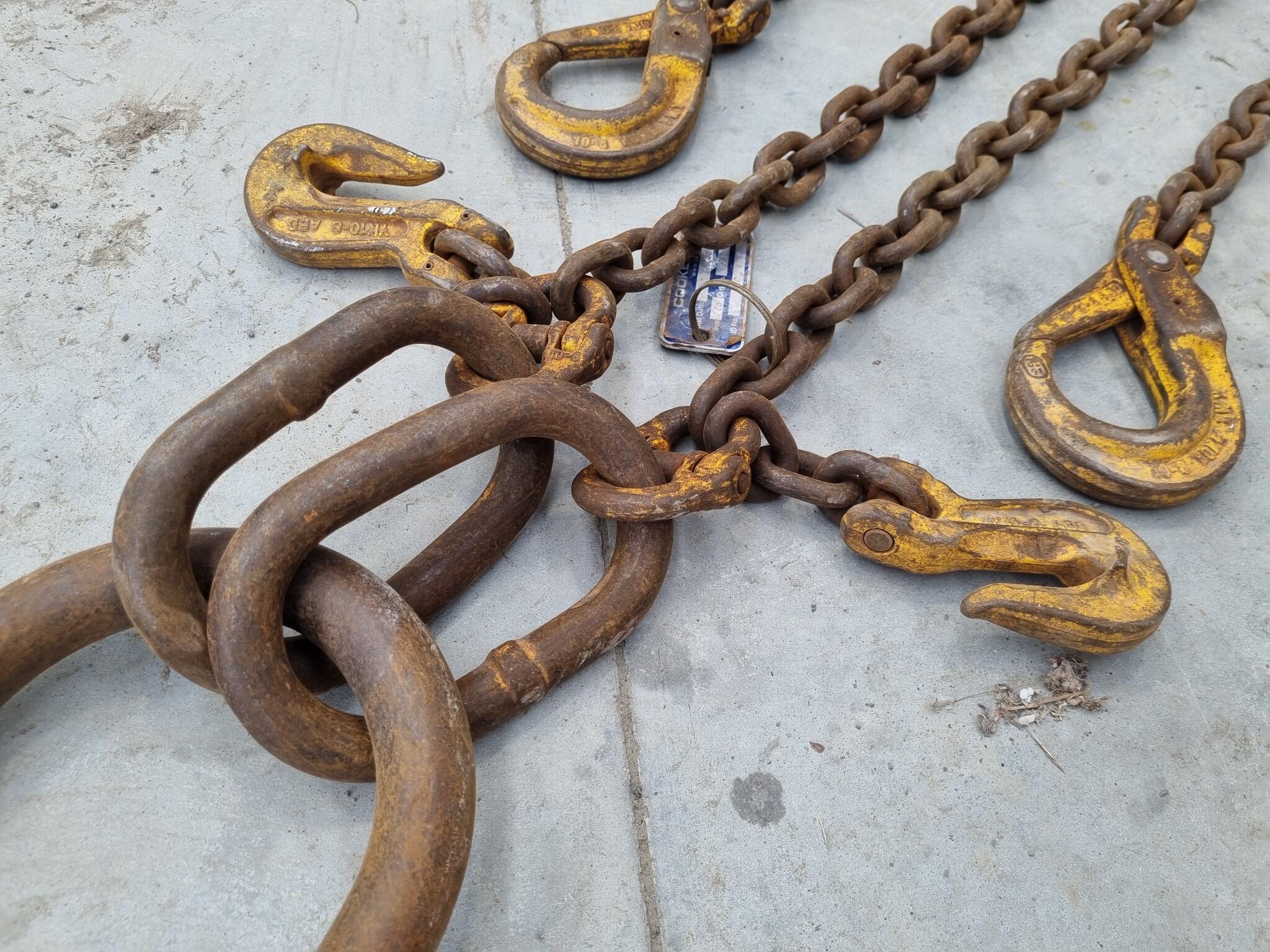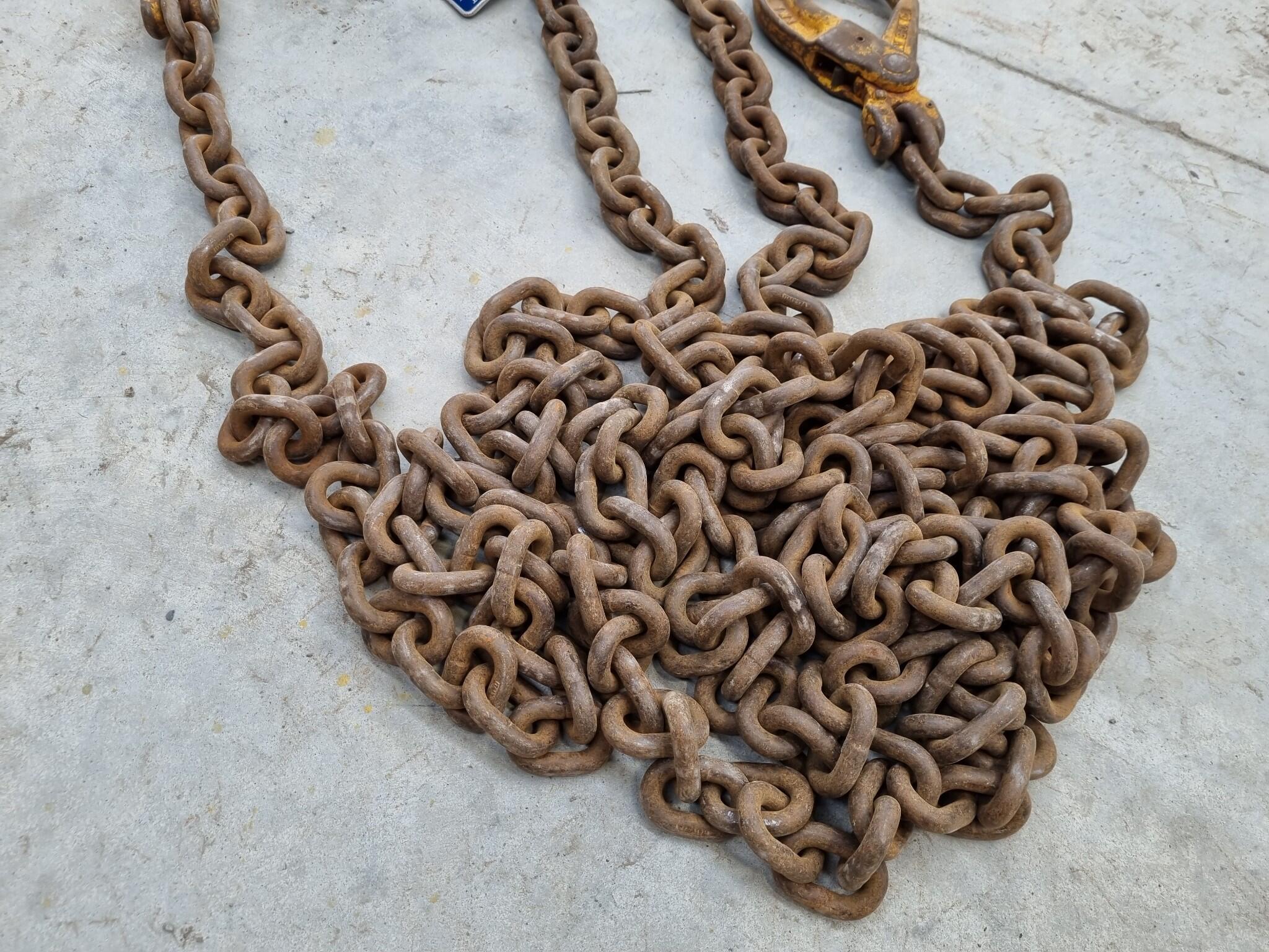 2-Leg Lifting Chain Assembly. 4250kg Max Capacity 2-leg, 3150kg single leg. 4-metre total length 10mm Chain size. 335x195x30mm master link. Certification tag expired 09/2024.