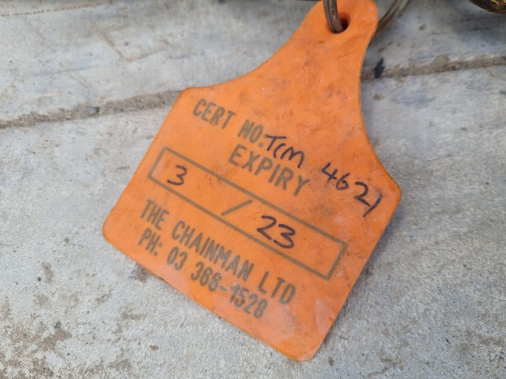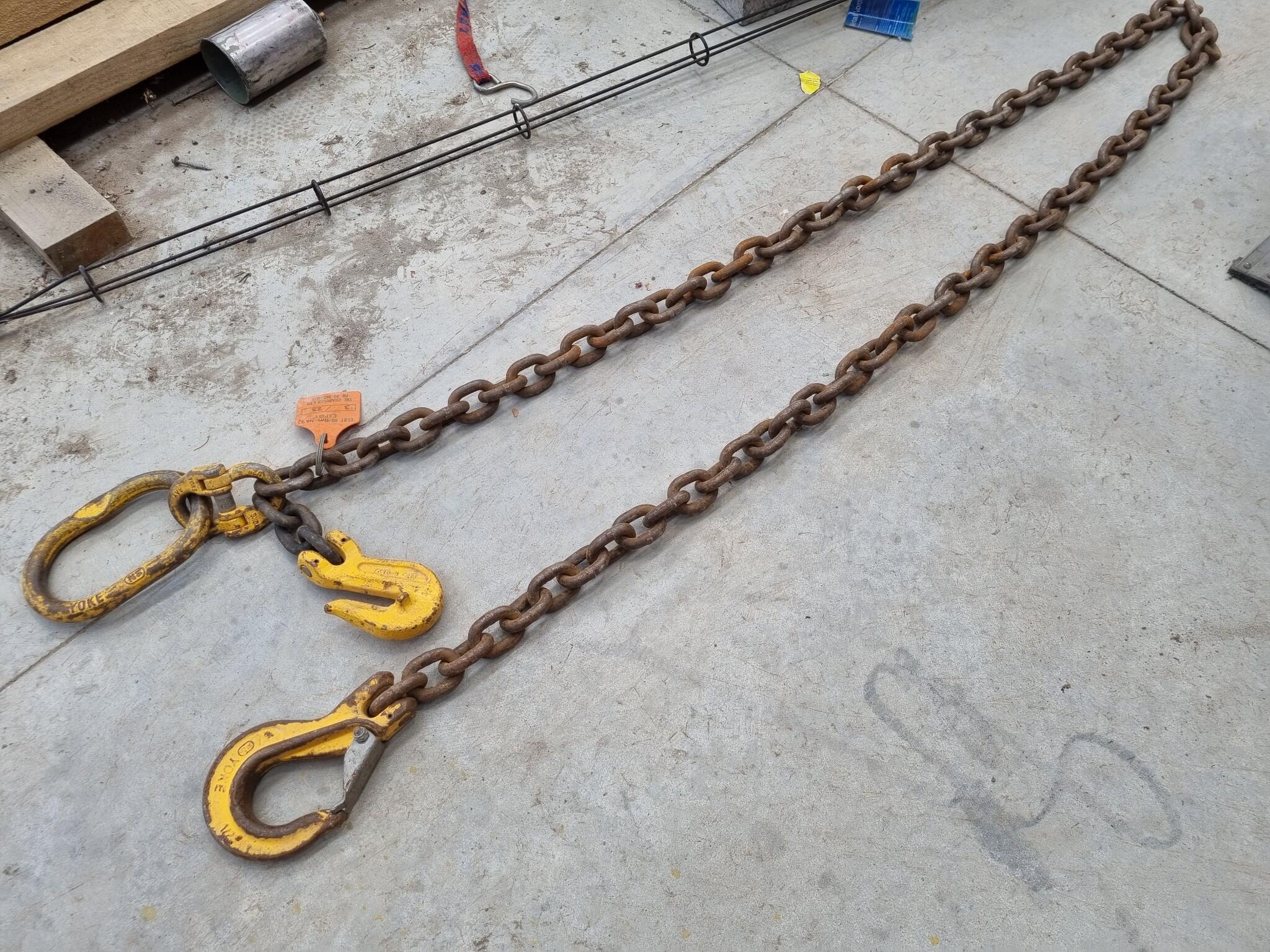 Single Leg Lifting Chain Assembly. 5.3-Ton Capacity. 13mm Chain size. Approx 3500mm length Certification expired 03/2023.