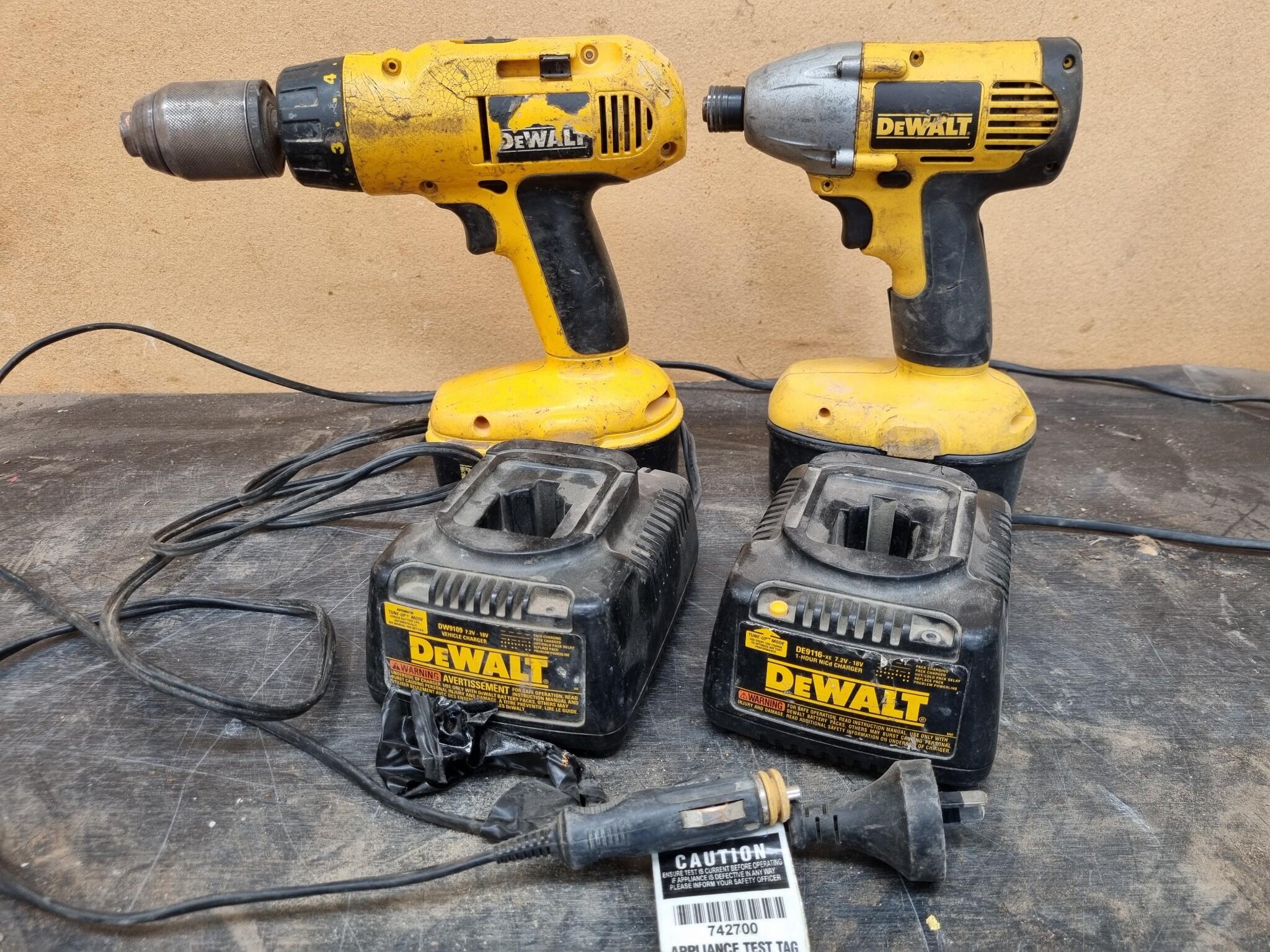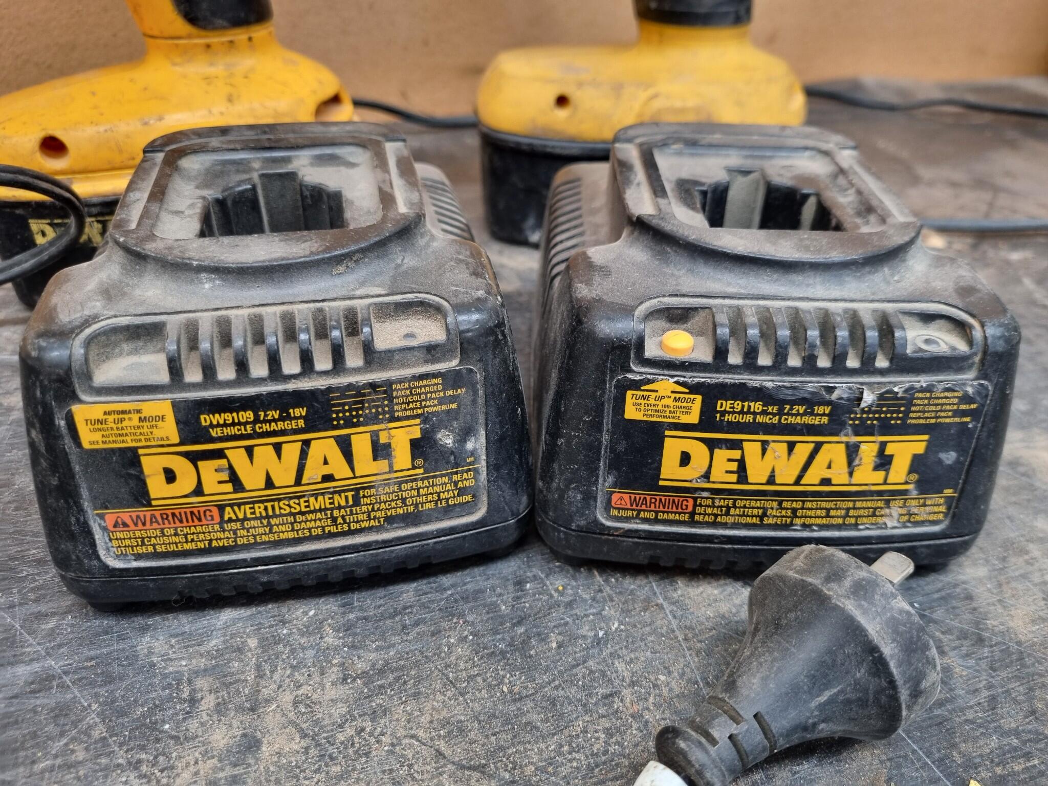 2x DeWalt Cordless 18V Drills w/ Chargers & Batteries.