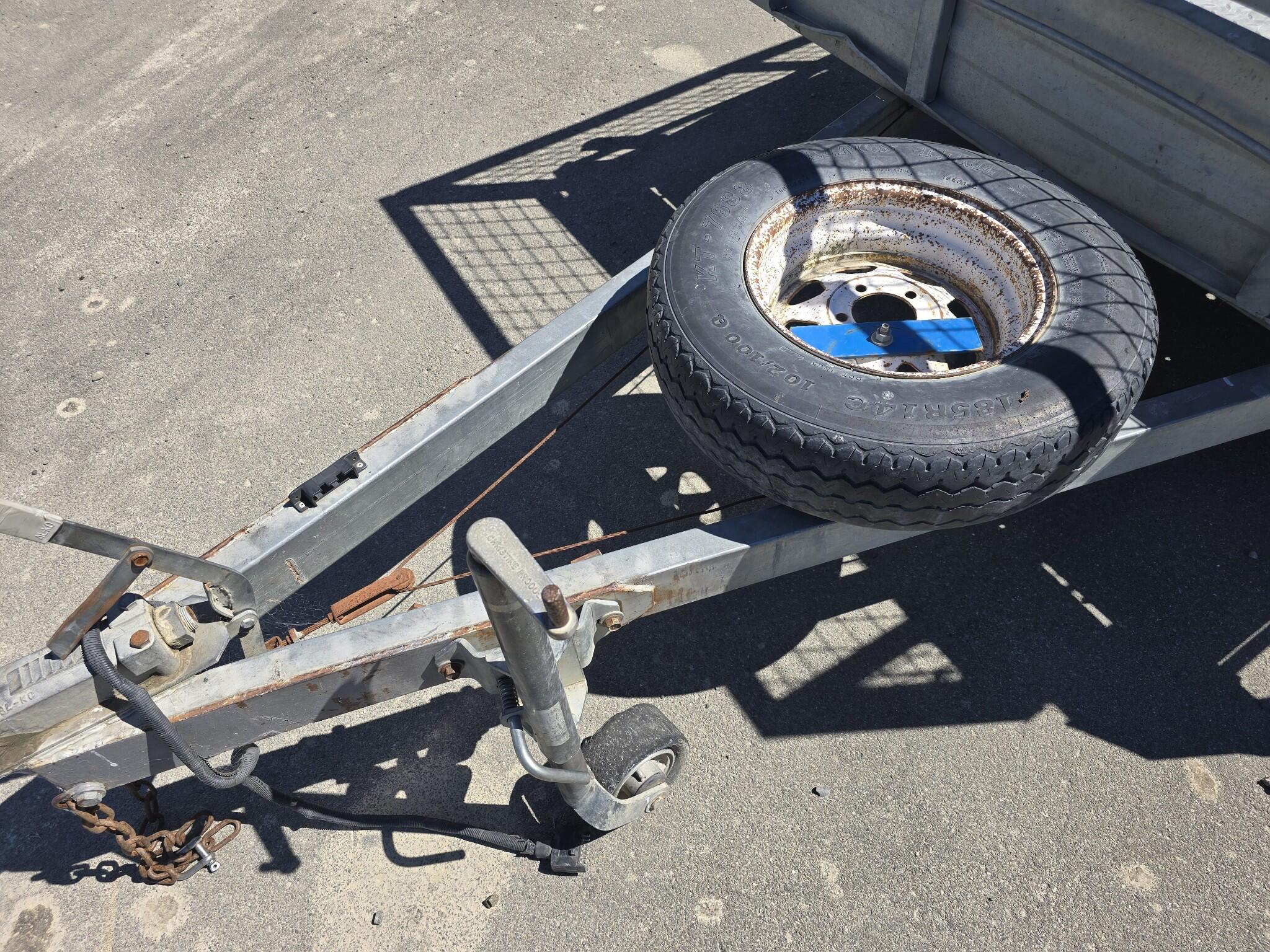 Spare wheel mounted on drawbar