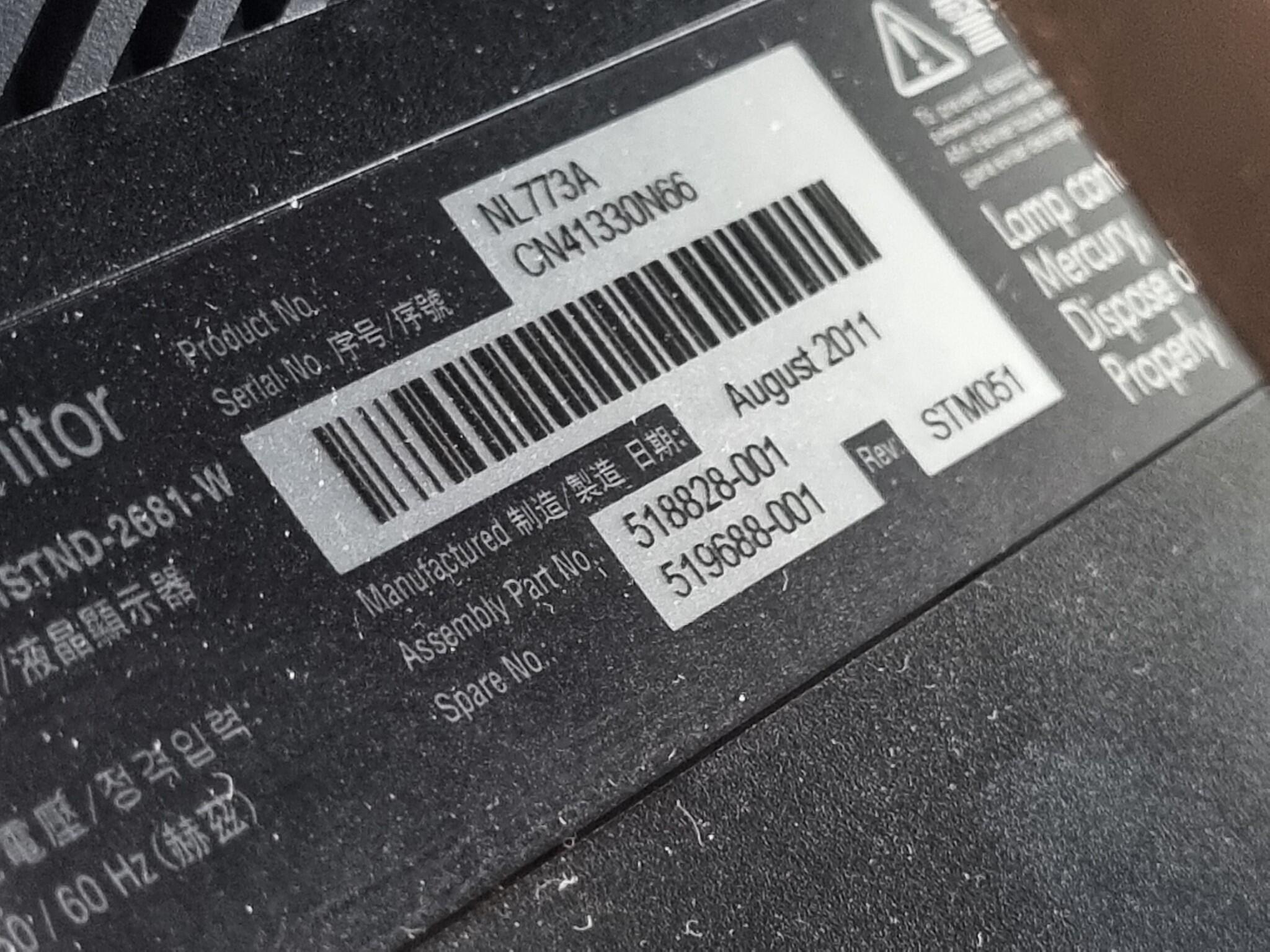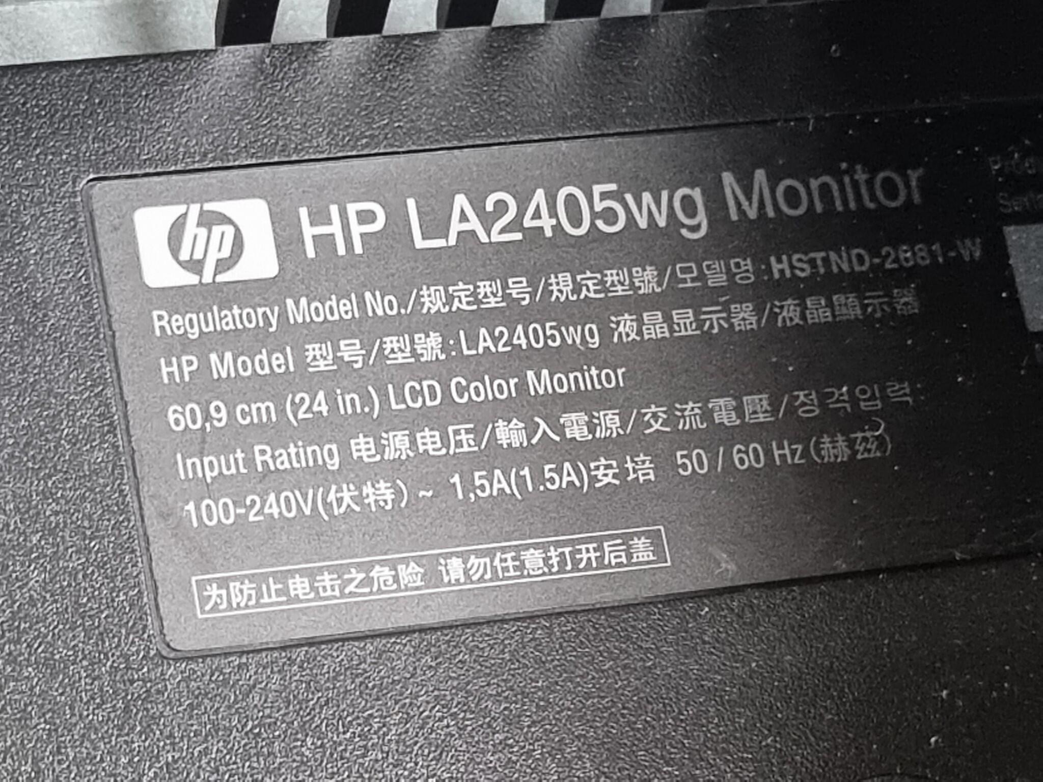 2x HP Compaq 24" LCD Monitors. Both are model.No.LA2405wg Both manufactured 2011. DisplayPort, DVI, D-Sub, and USB inputs. Power cords and video Cabling NOT included. Older models in above average cindition for their age.