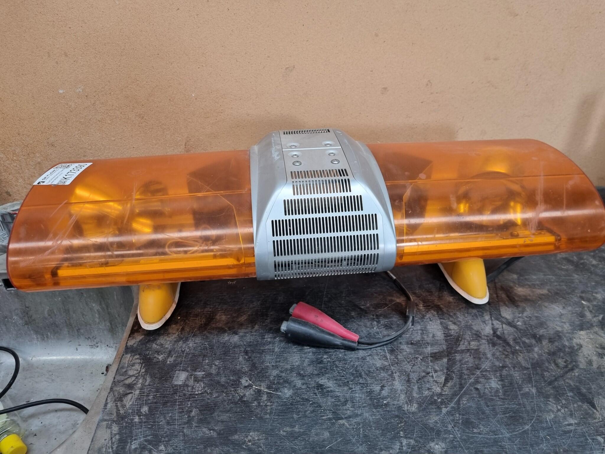 Emergency Vehicle Light Bar. Unknown manufacturer and model. Measures approx 760x295x220mm. Incandescent bulbs installed.