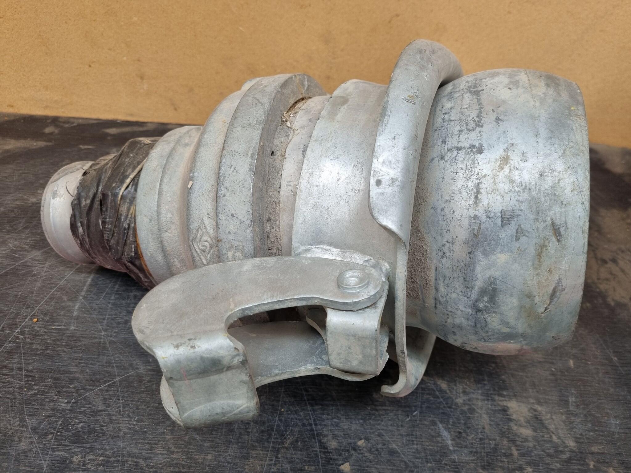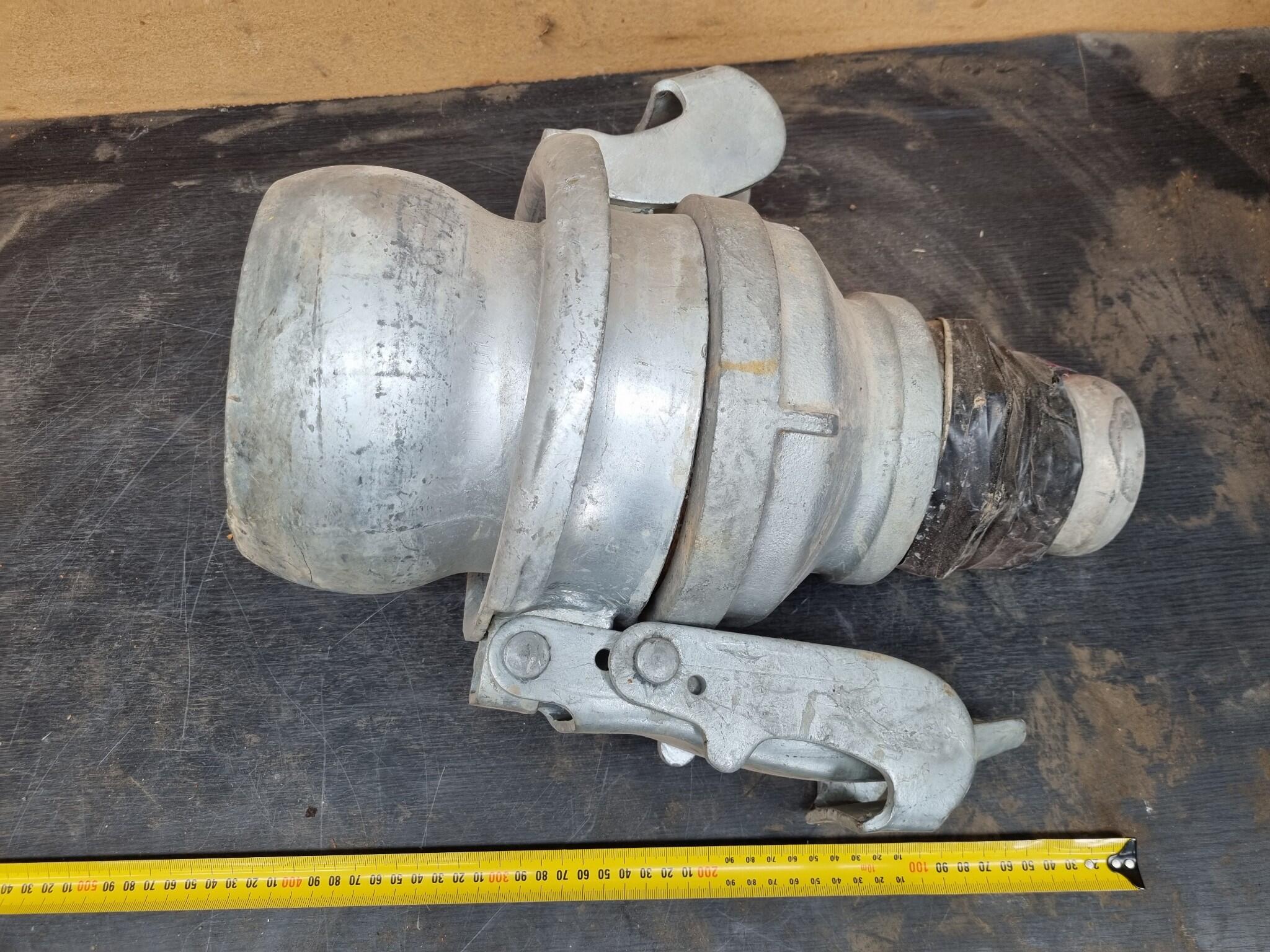 Large Water Hose Coupling. Galvanised steel construction. Smaller end outerr diameter 90mm. Large end outer diameter approx 160mm.