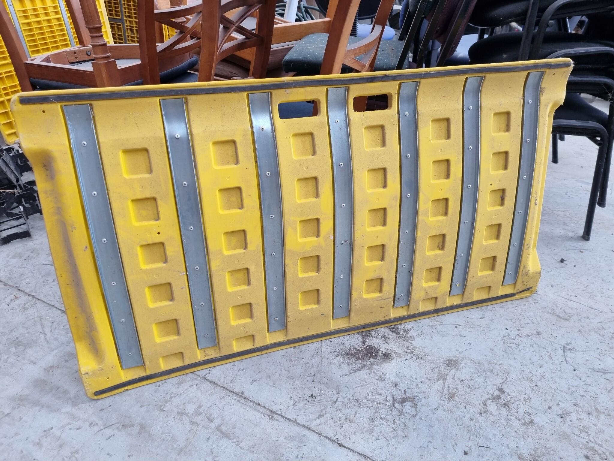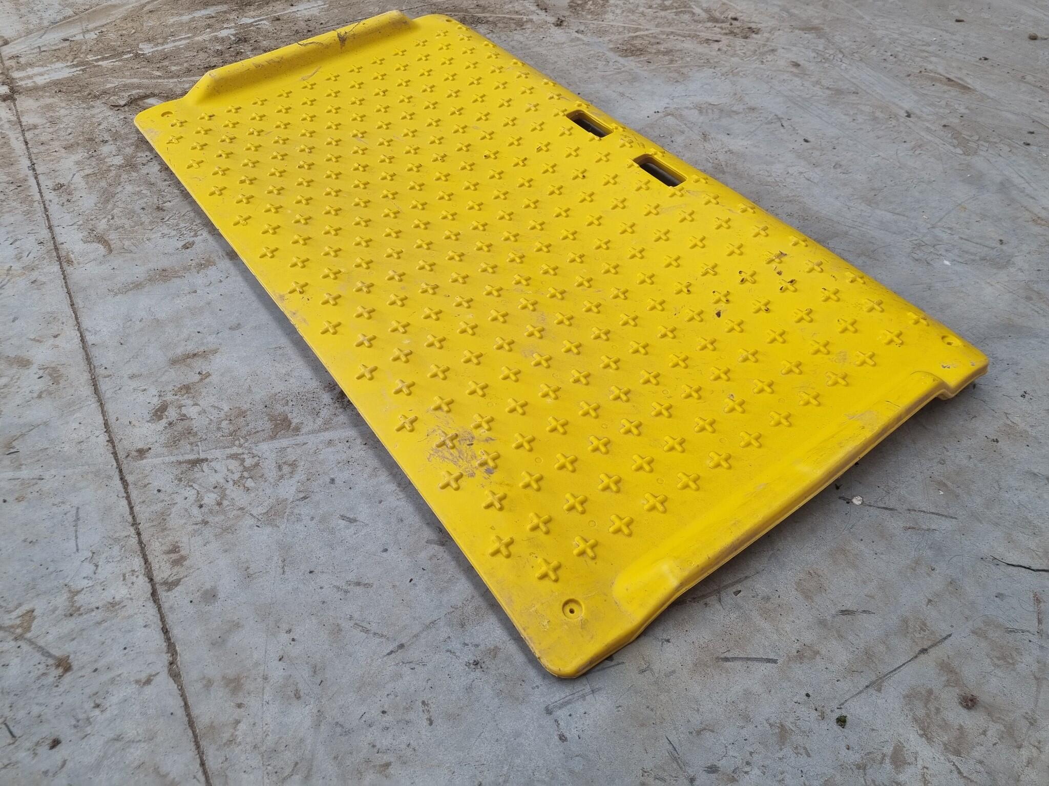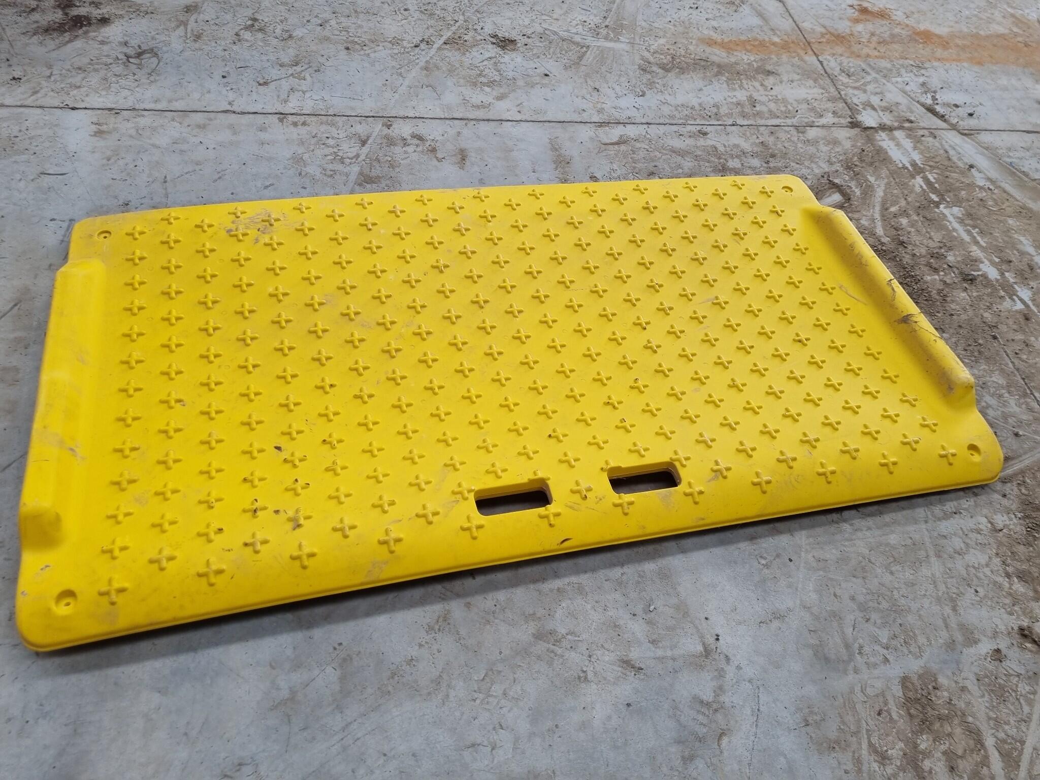 Reinforced Plastic Safety Trench Cover. Unknown msnufacturer and weight capacity specs. Some bending to item.