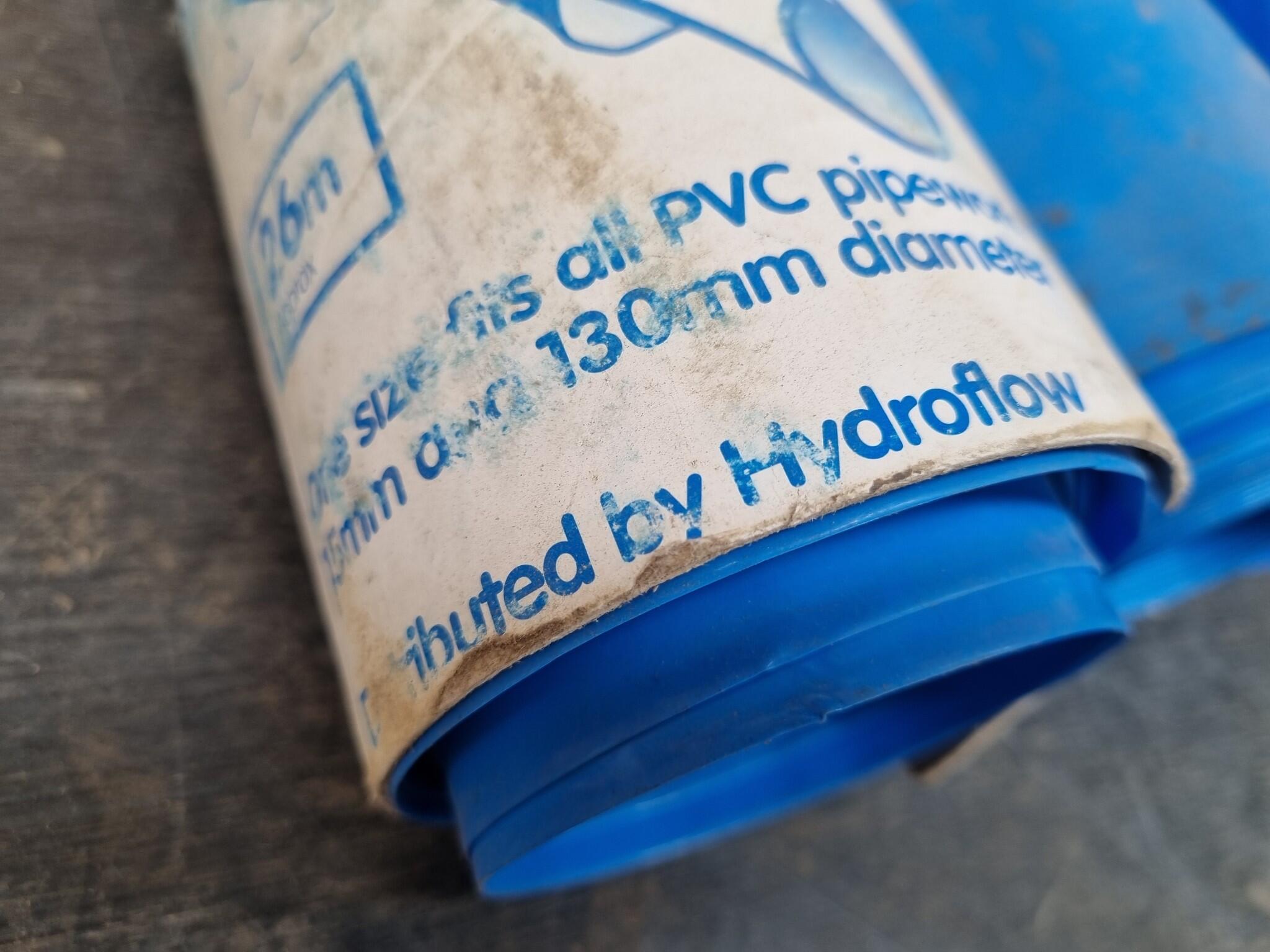 3x Rolls of PVC Pipe Sleeving. Accommodates pipes up to 130mm diameter. 3x Rolls in auction, leftover unused workshop stock, dirty from storage. Lengths remaining on each roll is unknown.