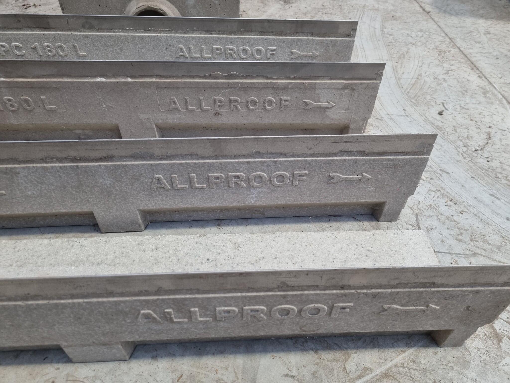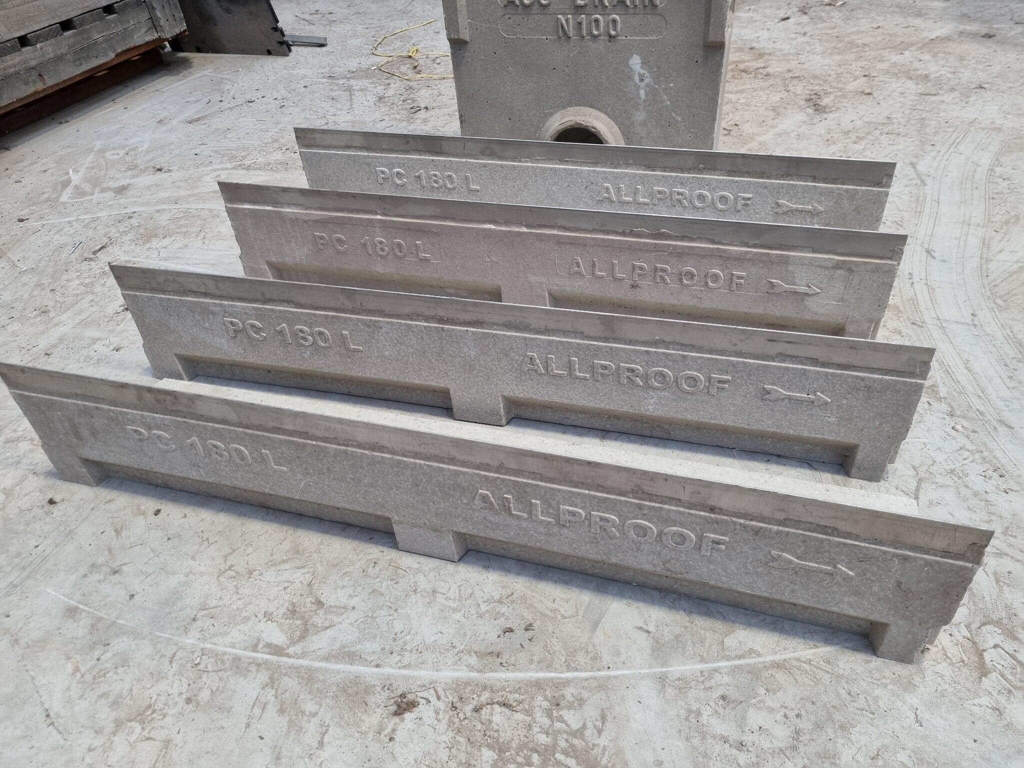 - 4x AllProof PC 180 L Drain trench lengths, each 1000x200x190mm.