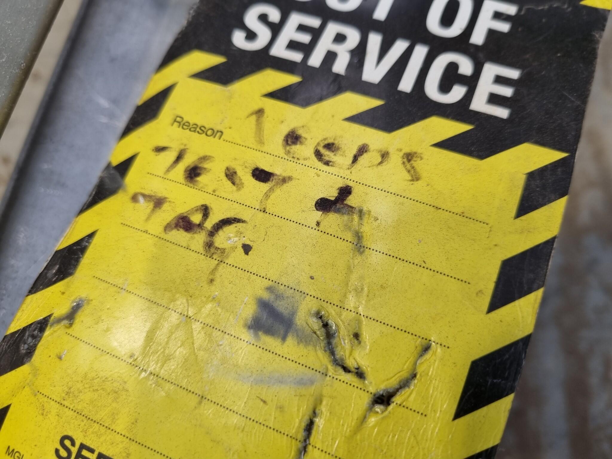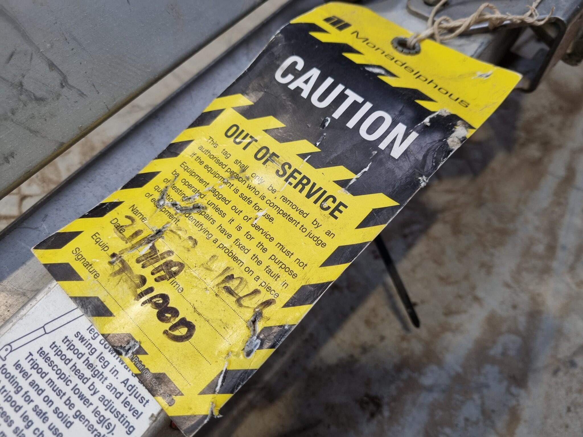 Out of Service safety tag on tripod stating the testing tag are long expired.