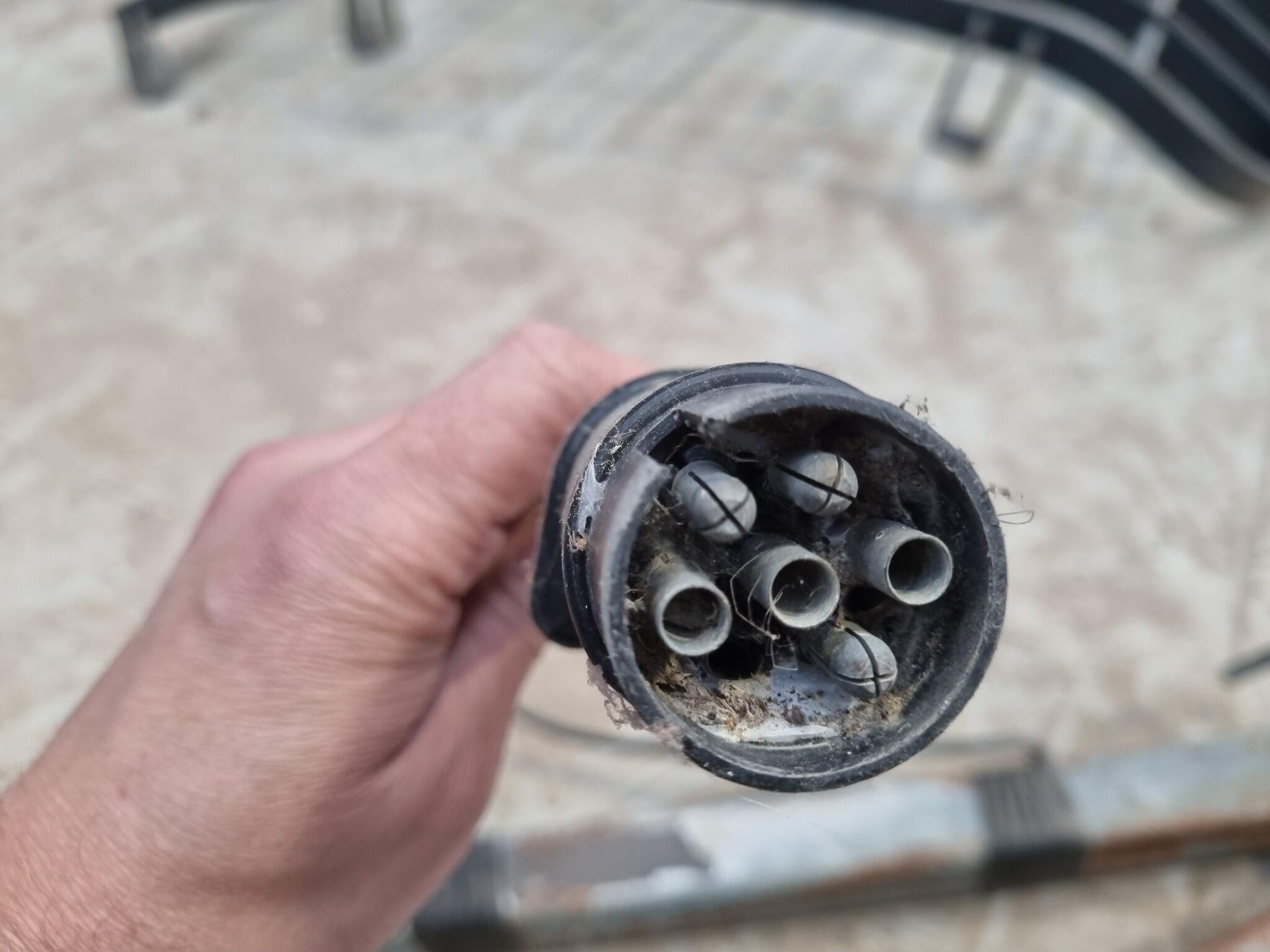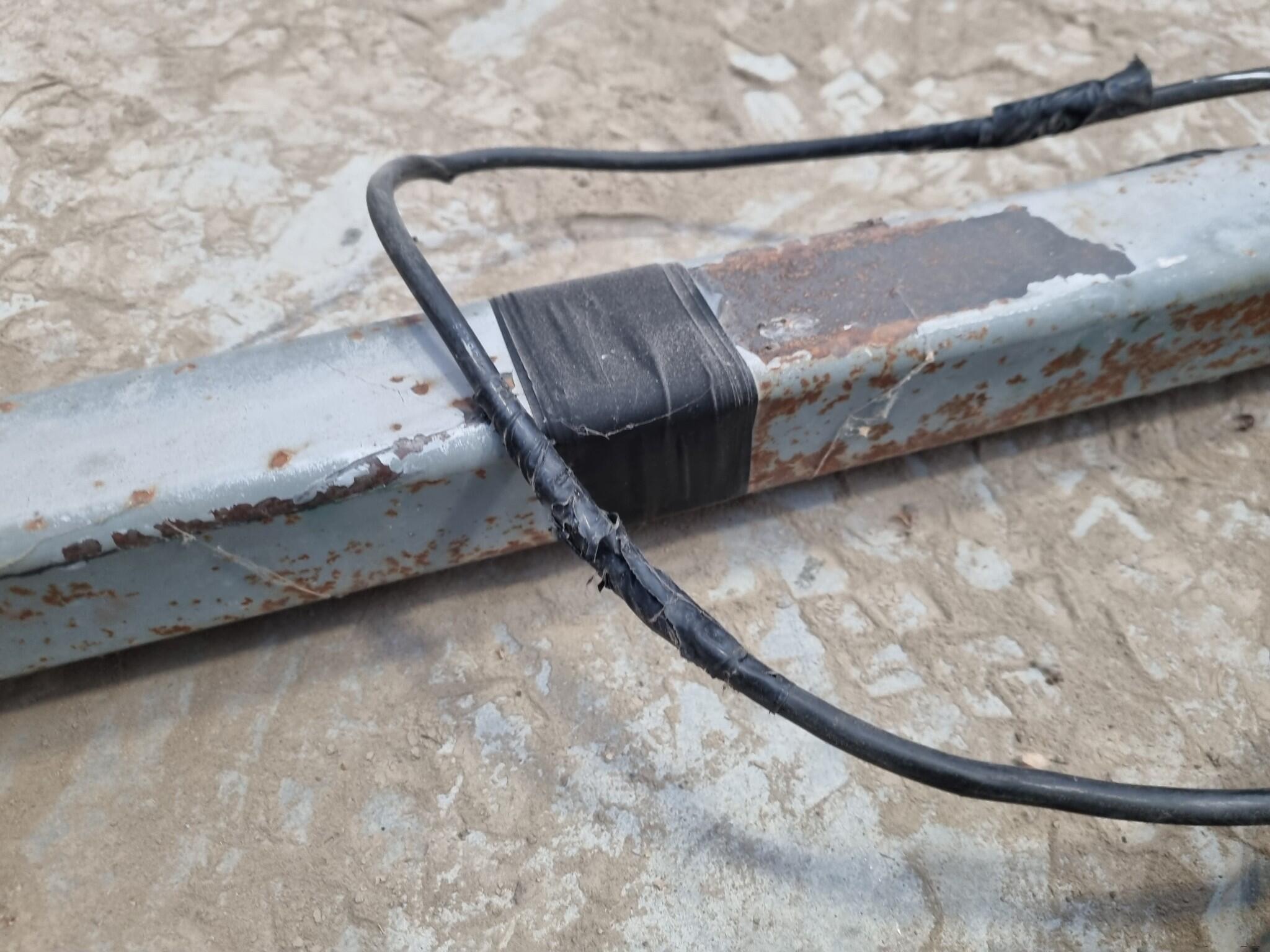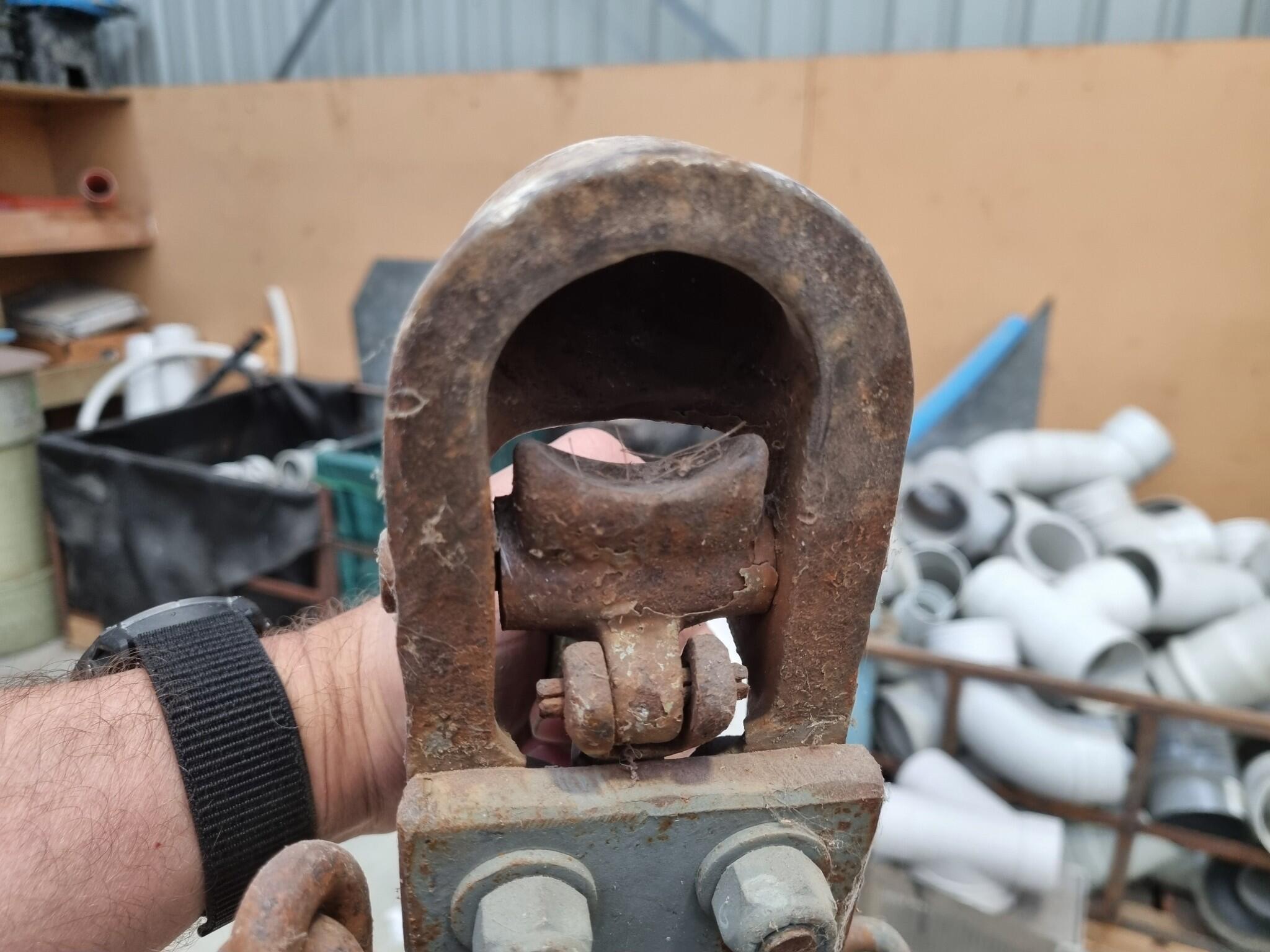 A-Frame Towing Bar Assembly. Transit branded 50mm ball socket Assembly. Mounting pins spacing 460mm wide. Circular power plug. Note that power plug cord shows cuts and damage to outer casing.