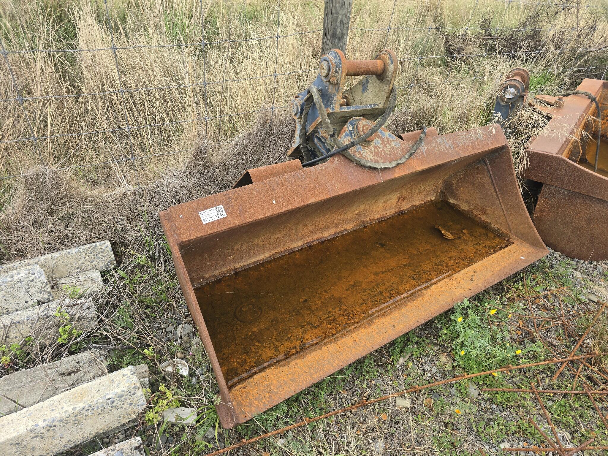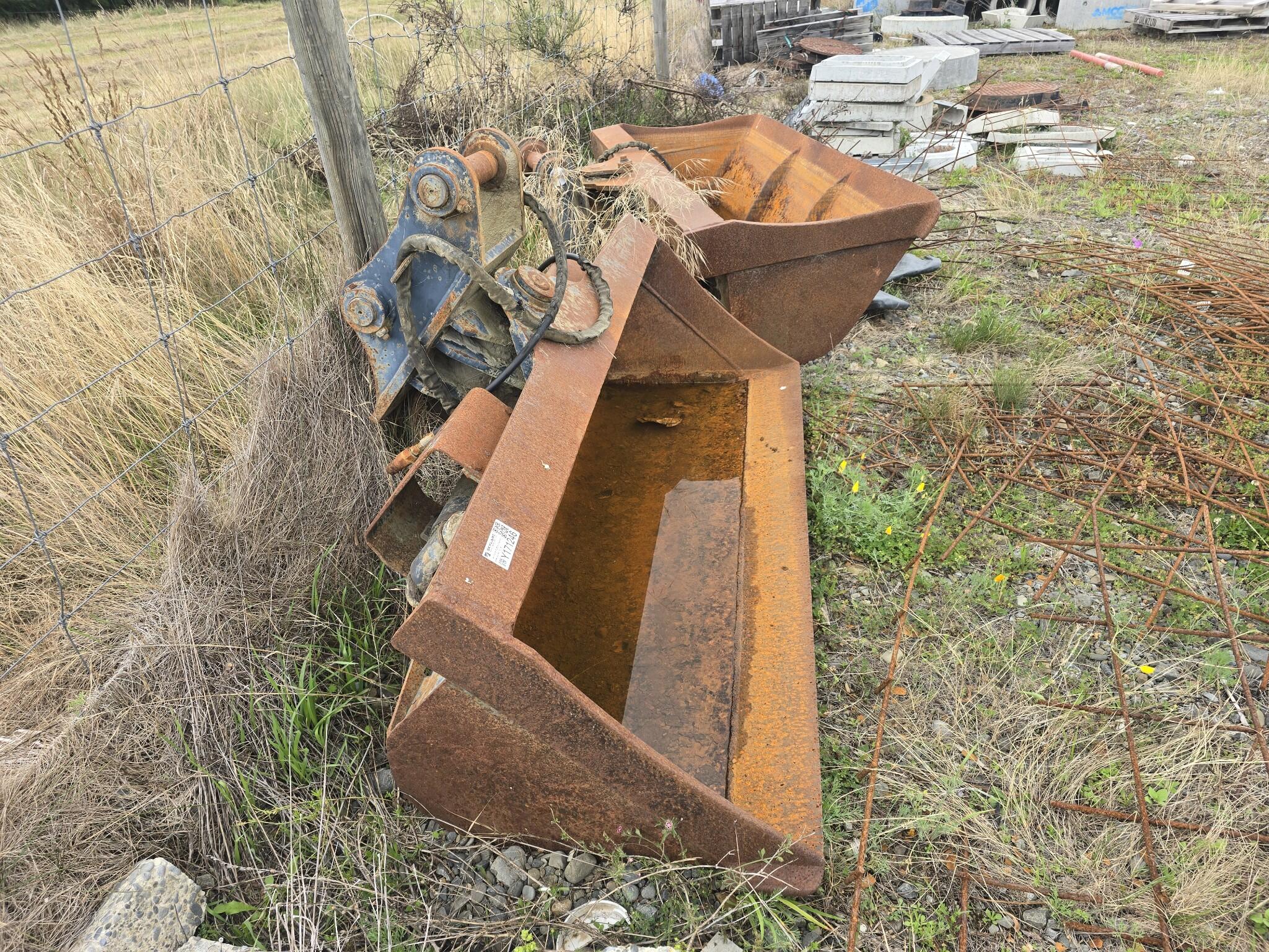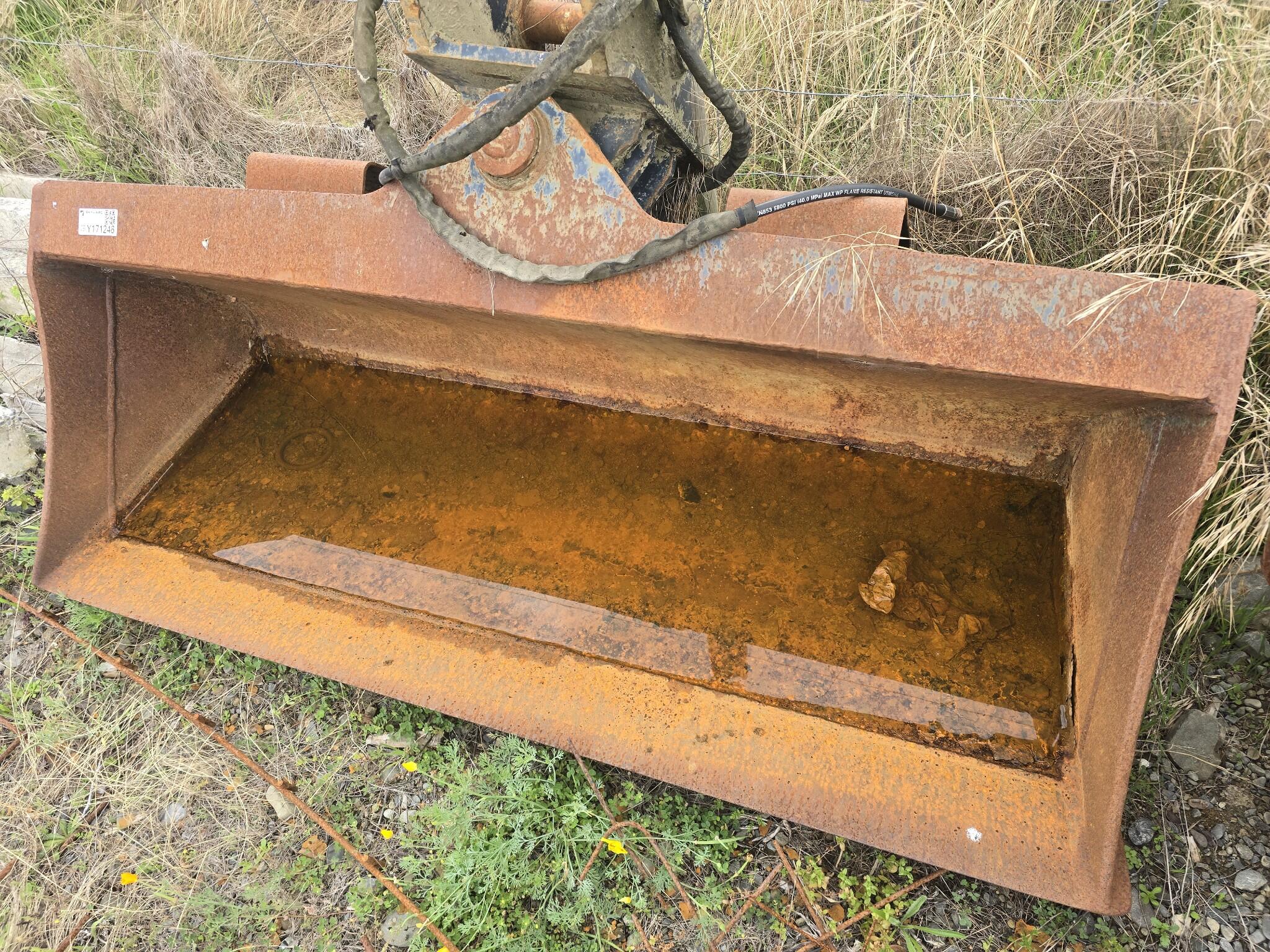 Excavator tilt bucket Bucket approximate width 1700mm Bucket approximate depth 720mm Bucket approximate height 470mm Pin diameter 60mm Pin length 200mm Distance between pin centres 290mm Hydraulic tilt mechanism fitted