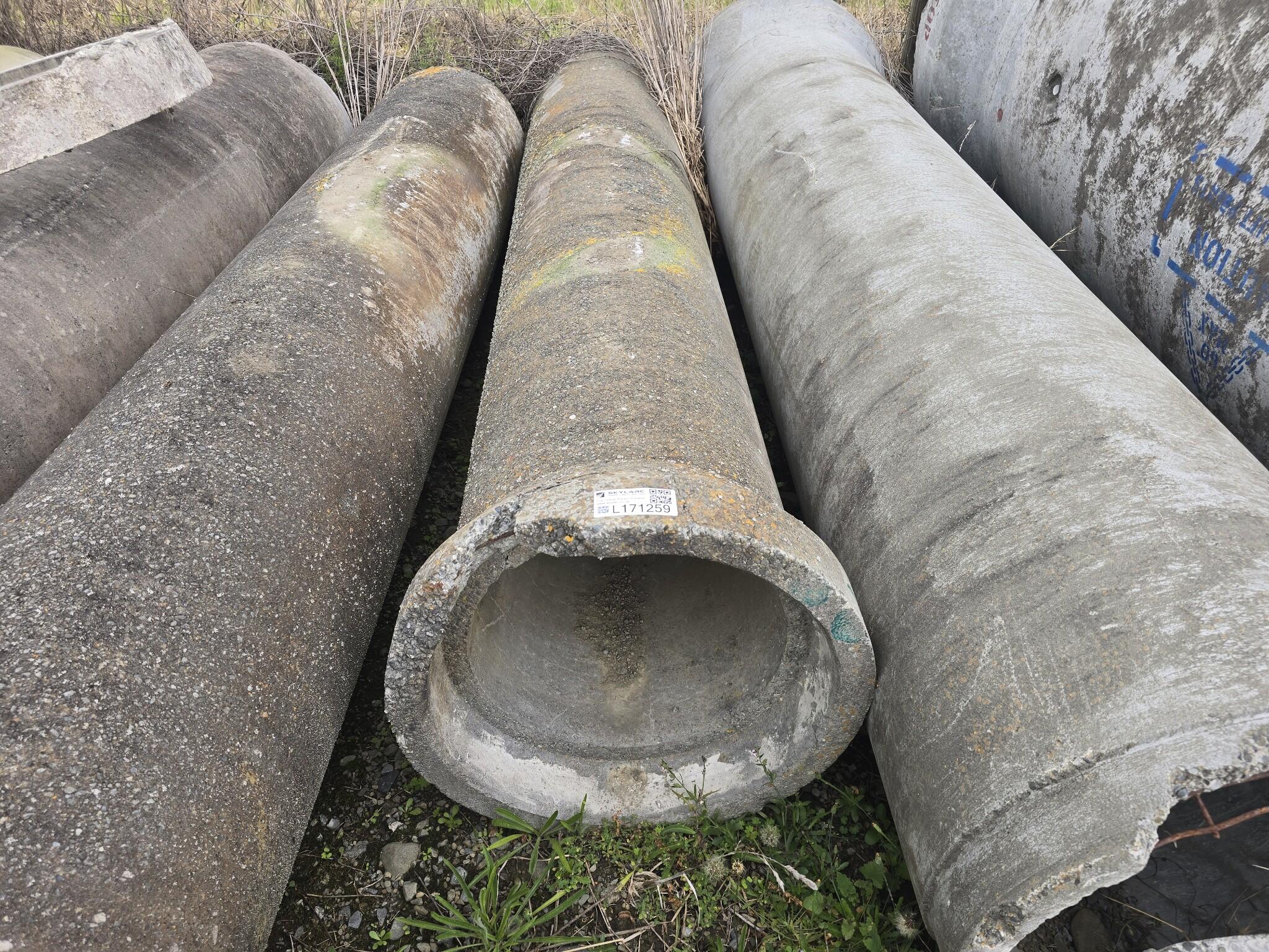 Concrete pipe section. Tapered bell end on one side. 440mm outside diameter at the narrow end. 540mm outside diameter at the wide end. Damage to ends