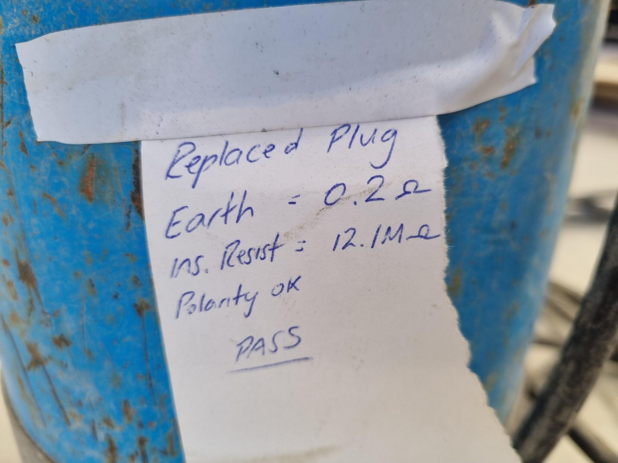 Hand written note taped to exterior states that a "plug" has been replaced on unit. Turned on briefly by us, sounds OK but not tested with water or at length.
