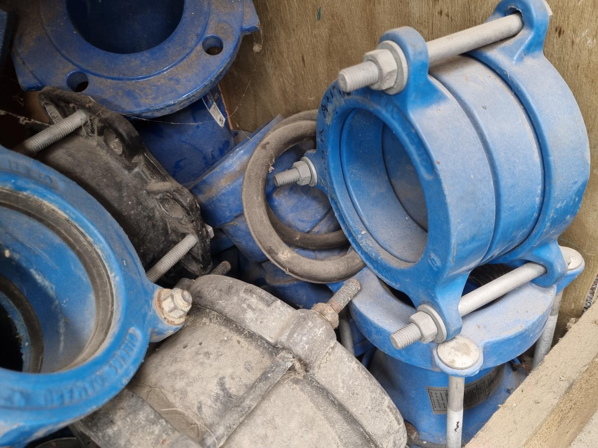 Assorted Heavy Steel Pipe Fittings, Couplings. Inner diameters up to 100mm. About 15x various units on auction. Leftover workshop parts supply stock.