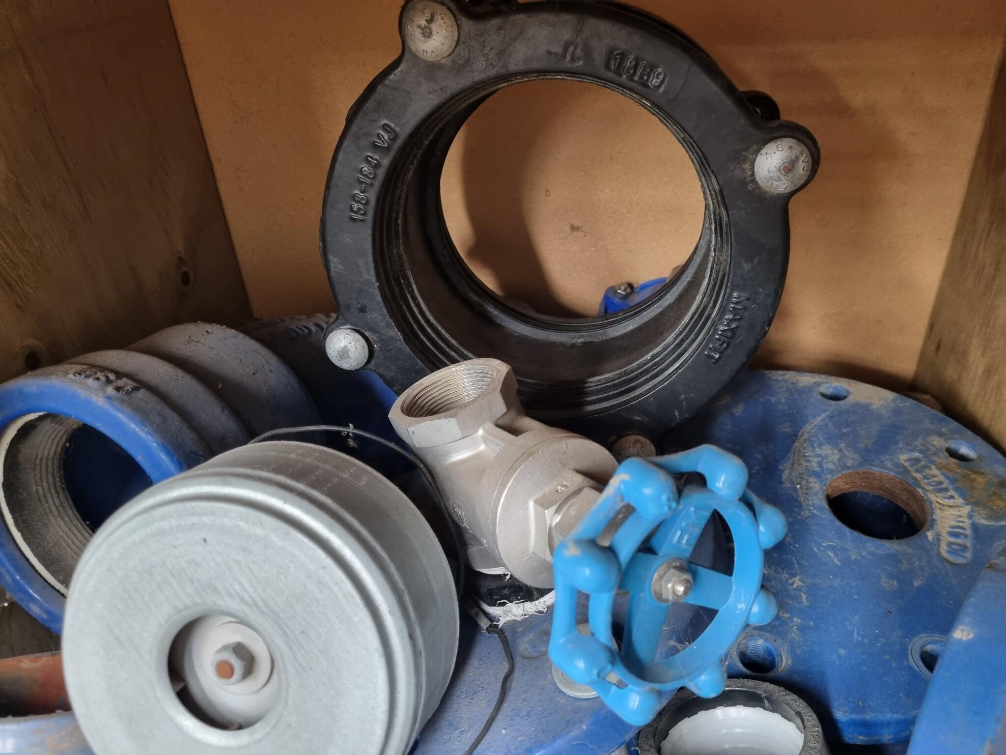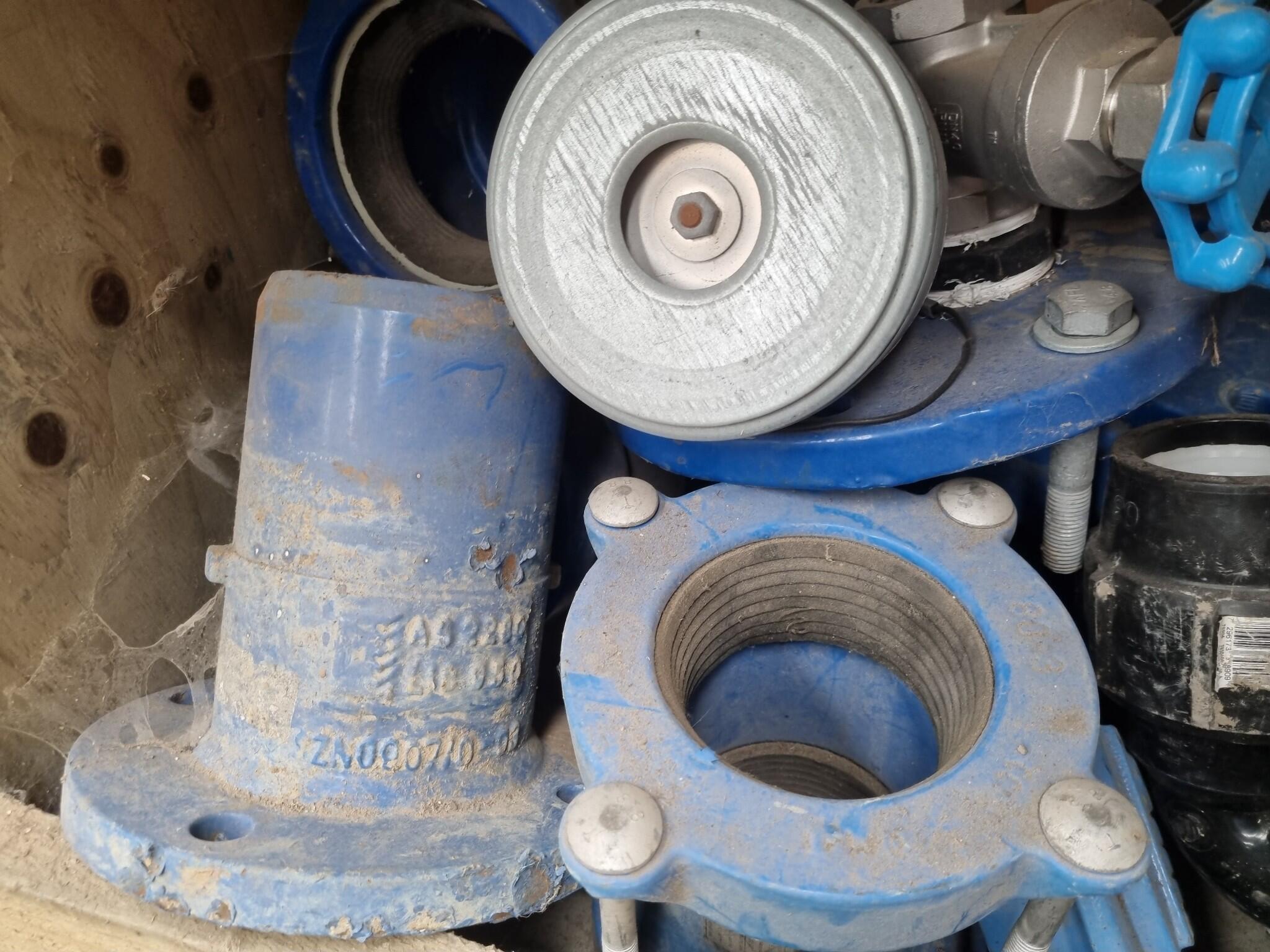 Assorted Heavy Steel Pipe Fittings, Couplings. Diameters vary up to 180mm. Leftover workshop parts supply stock.