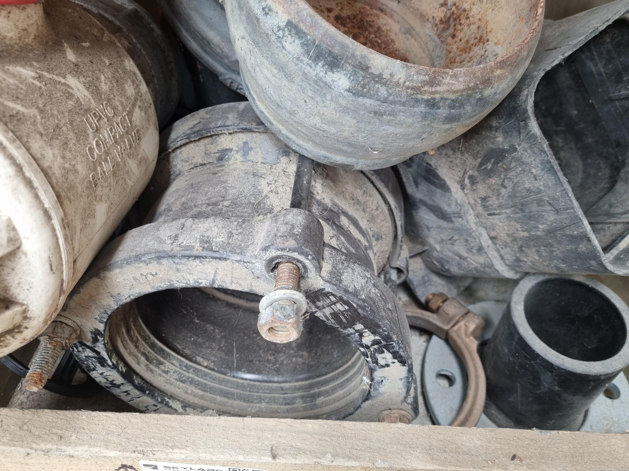 Assorted Heavy Steel Pipe Fittings, Couplings. Diameters up to 180mm. Condition varies with each item. Leftover workshop parts stock