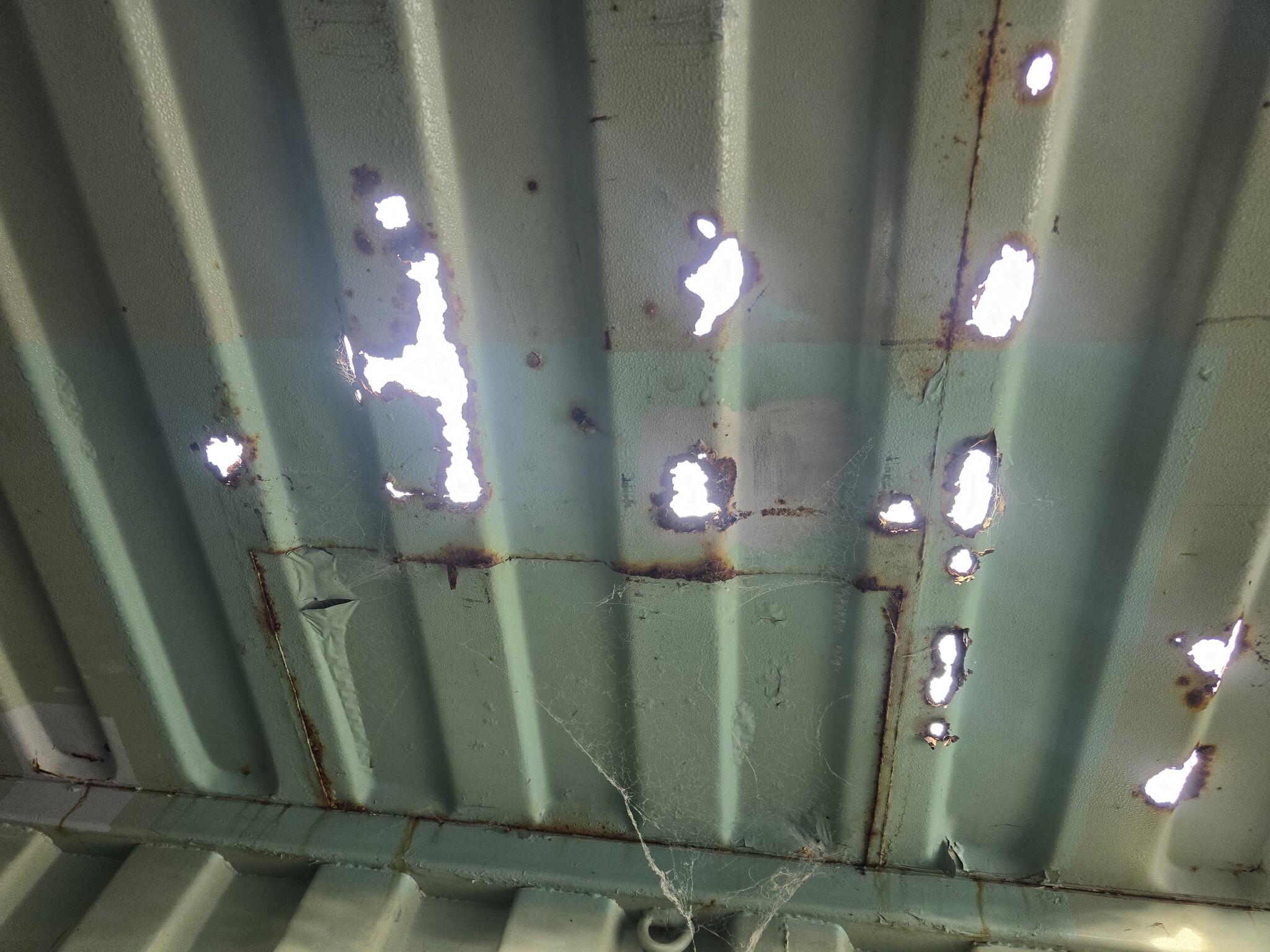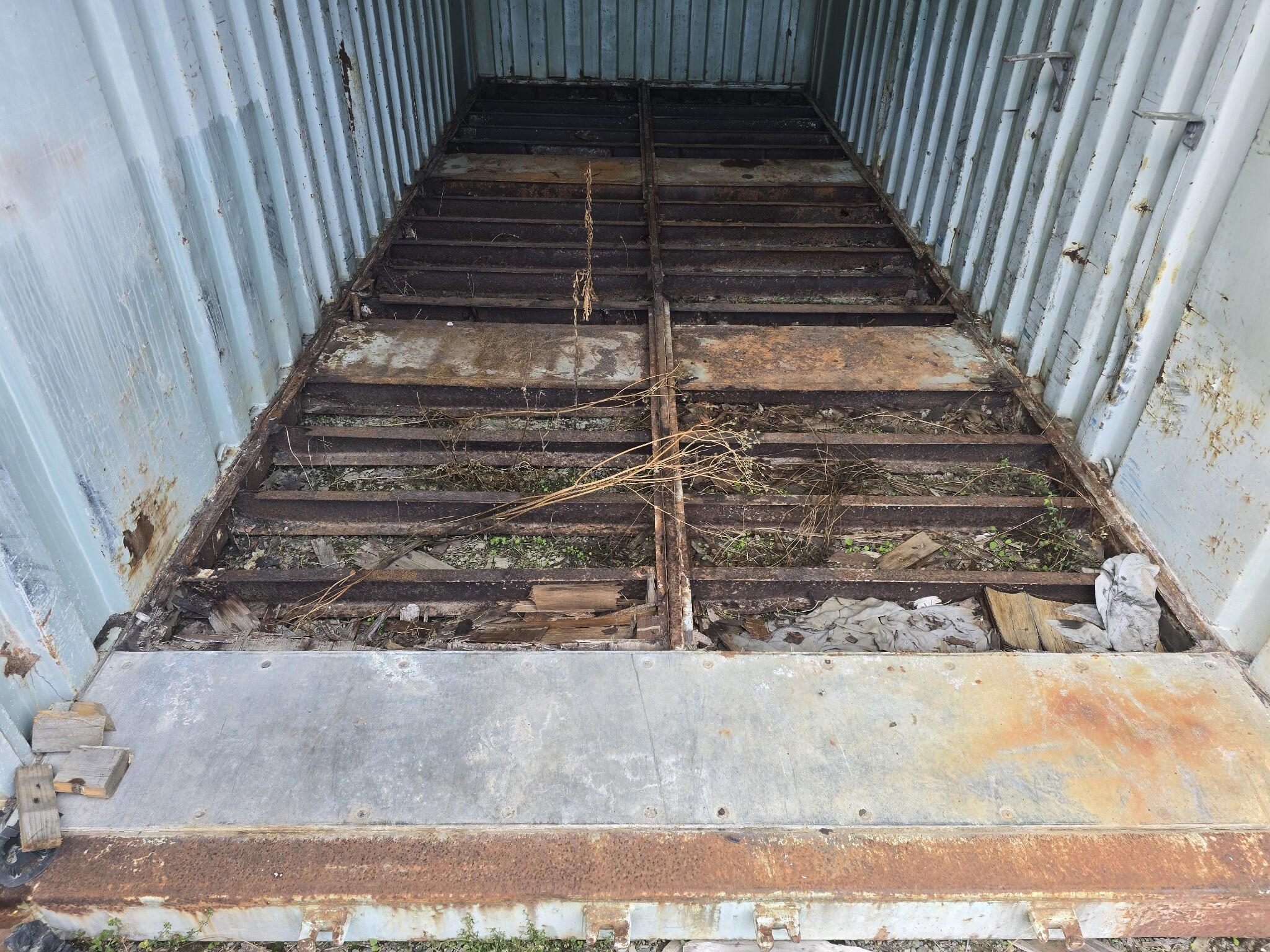 Rust holes in roof No floor Has lights fitted Sides and rear in his condition Doors open freely You will need a hiab or similar to load this container