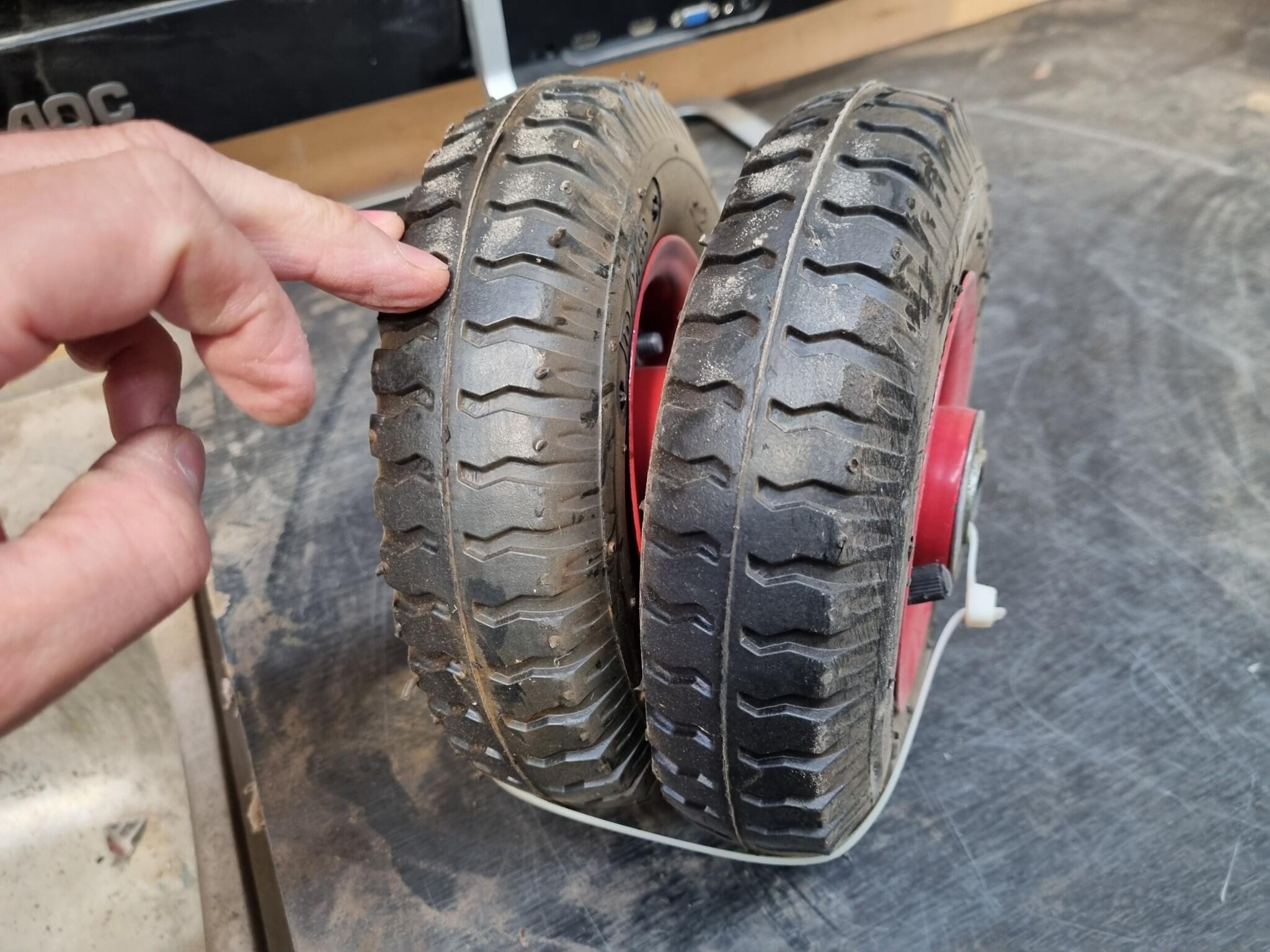 2x 210mm Pneumatic Trolley Tyres. 55mm width. 210mm diameter. As new unused, dusty from Workshop storage.