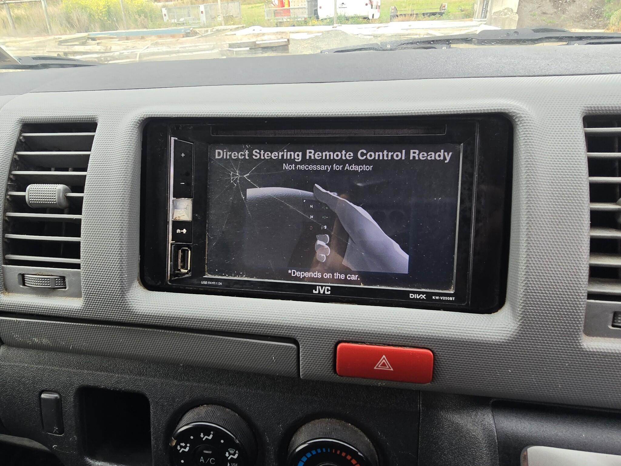 Aftermarket JVC KW-V250BT head unit installed.