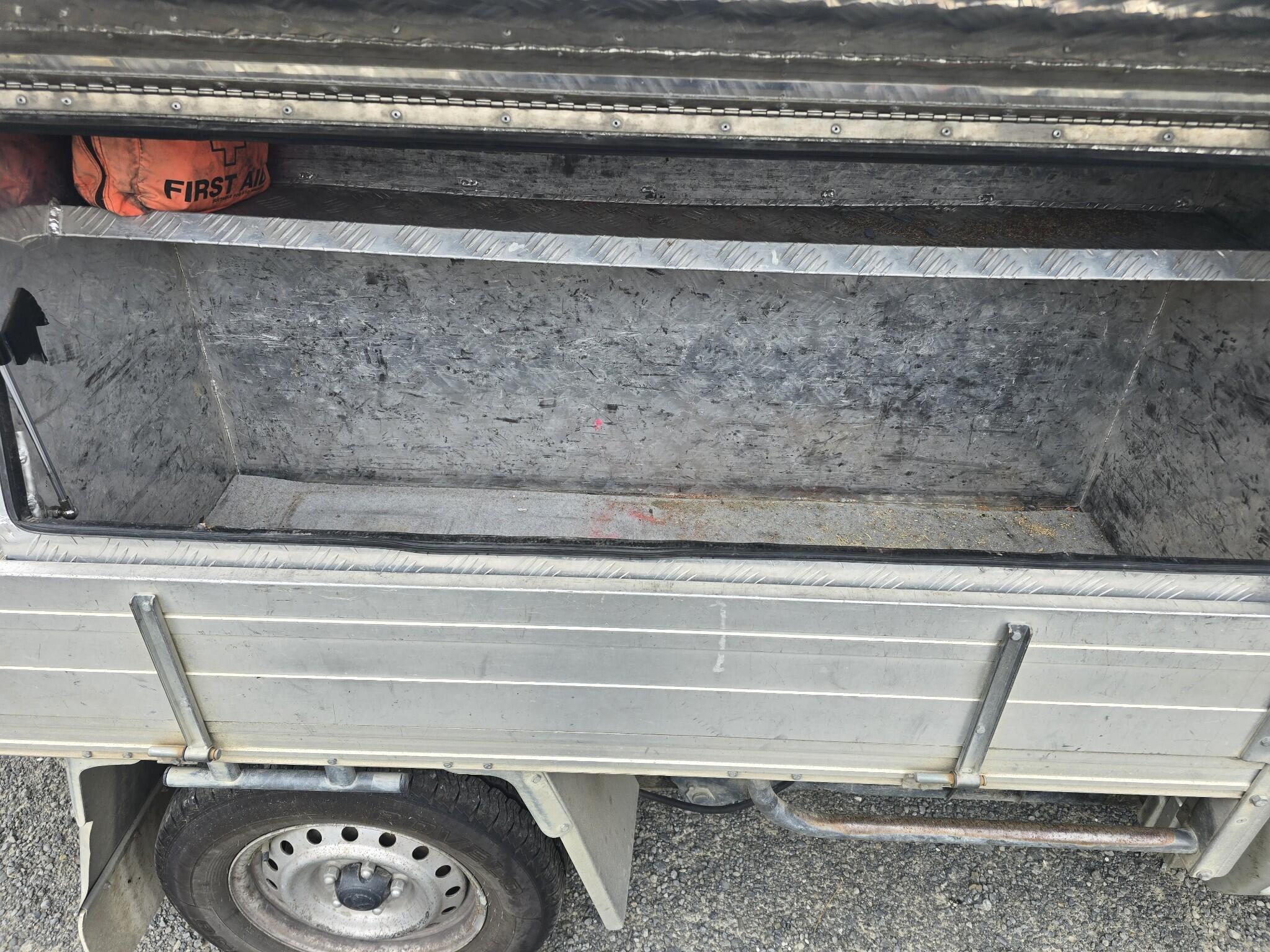 Aluminium checkerplate tool box mounted in tray